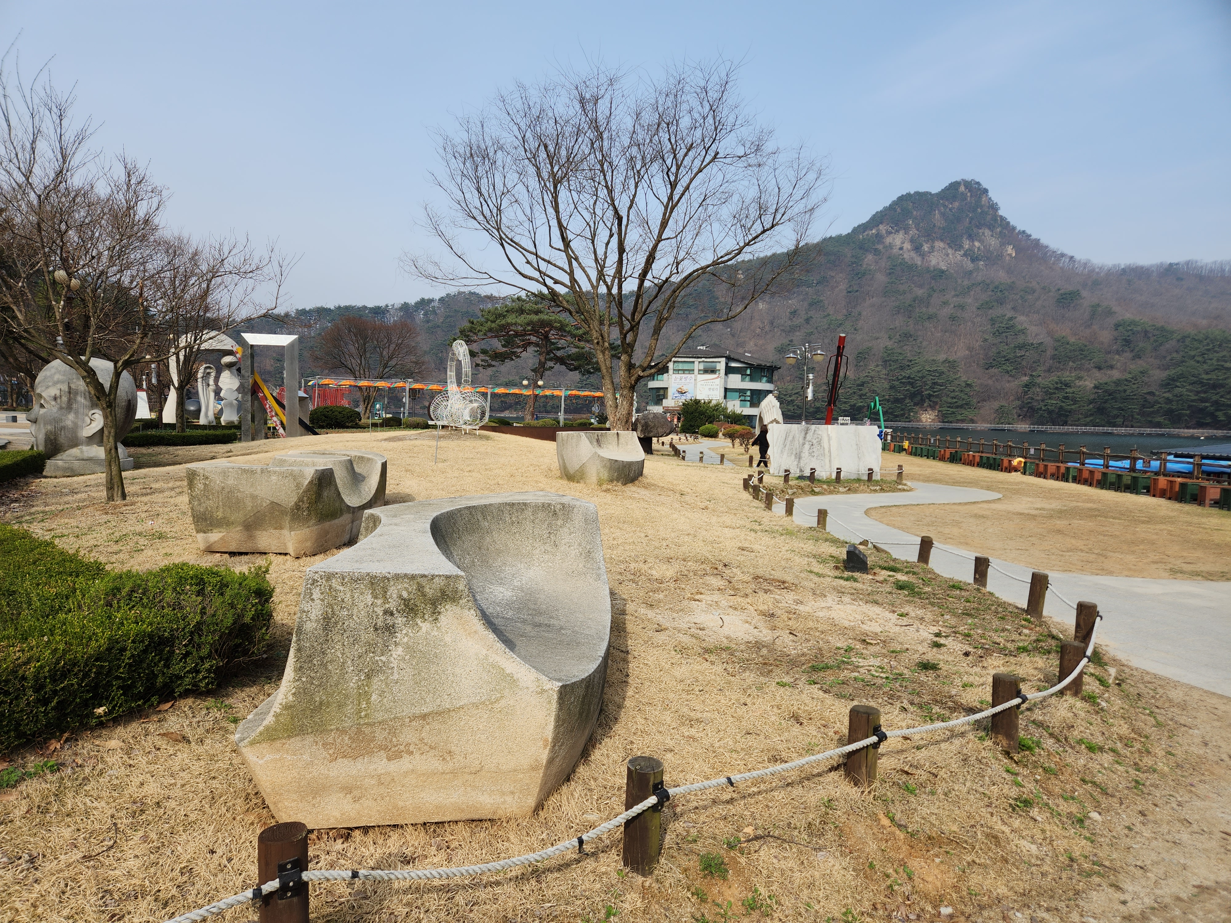 호수 앞에는 조각공원도 있어서 뛰어놀기도 좋아요.