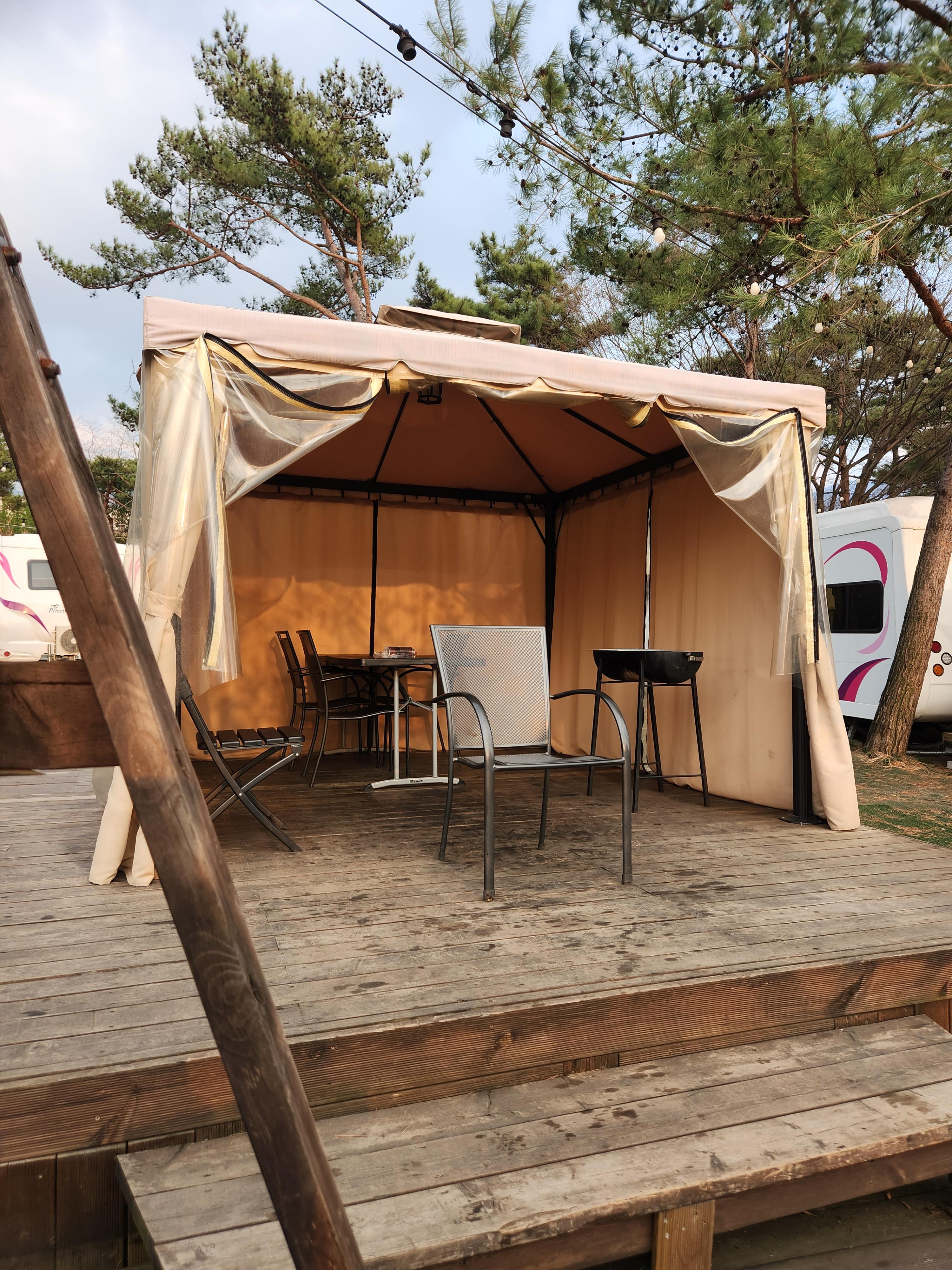 카라반도 있고 카라반 바로 옆에는 개별로 바베큐 및 불멍을 할 수 있는곳이 붙어 있어요.