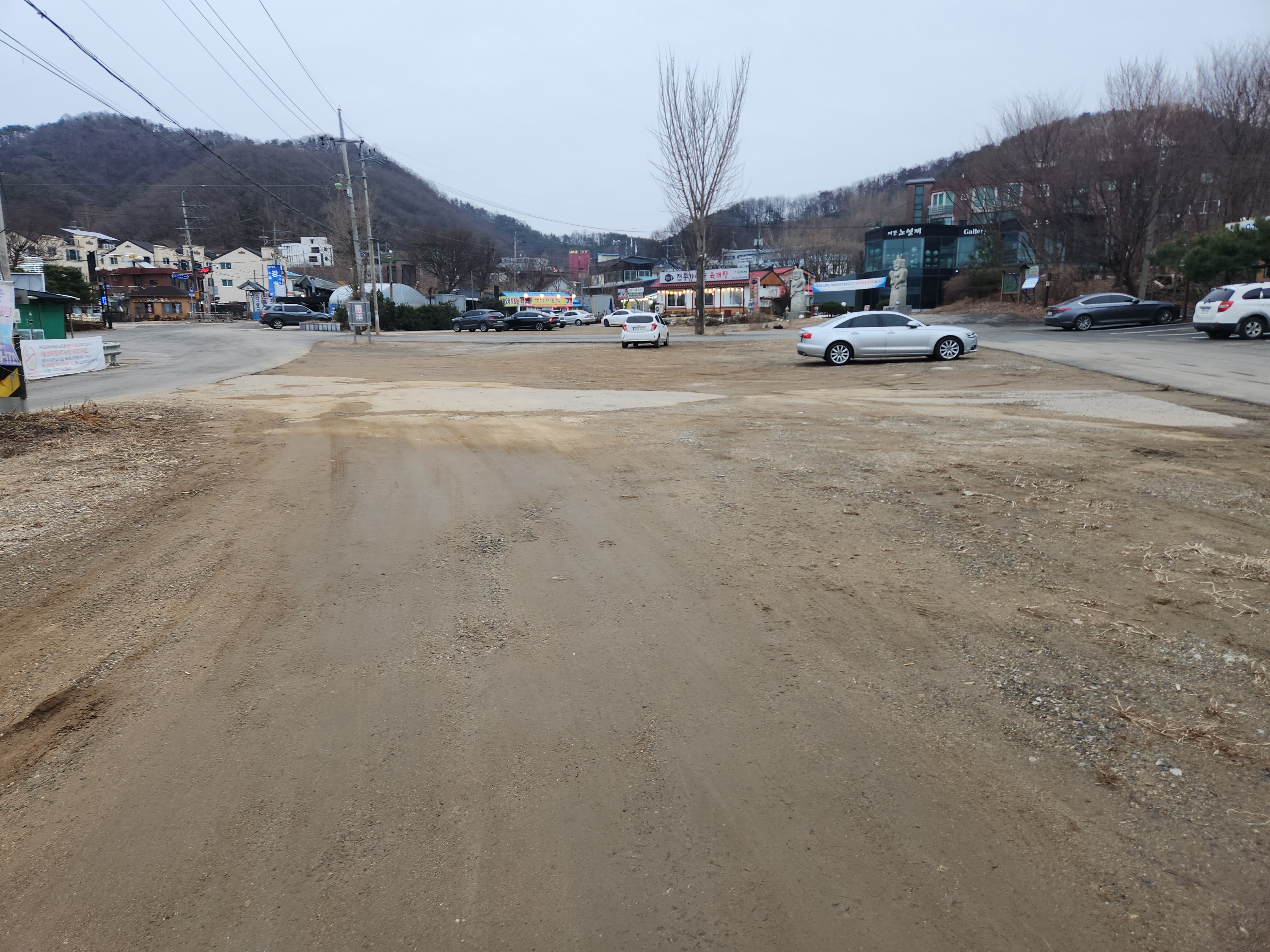 주차장은 매우 넓어 걱정 없어요. 바로 앞에 위치한 공터에 차를 주차합니다.