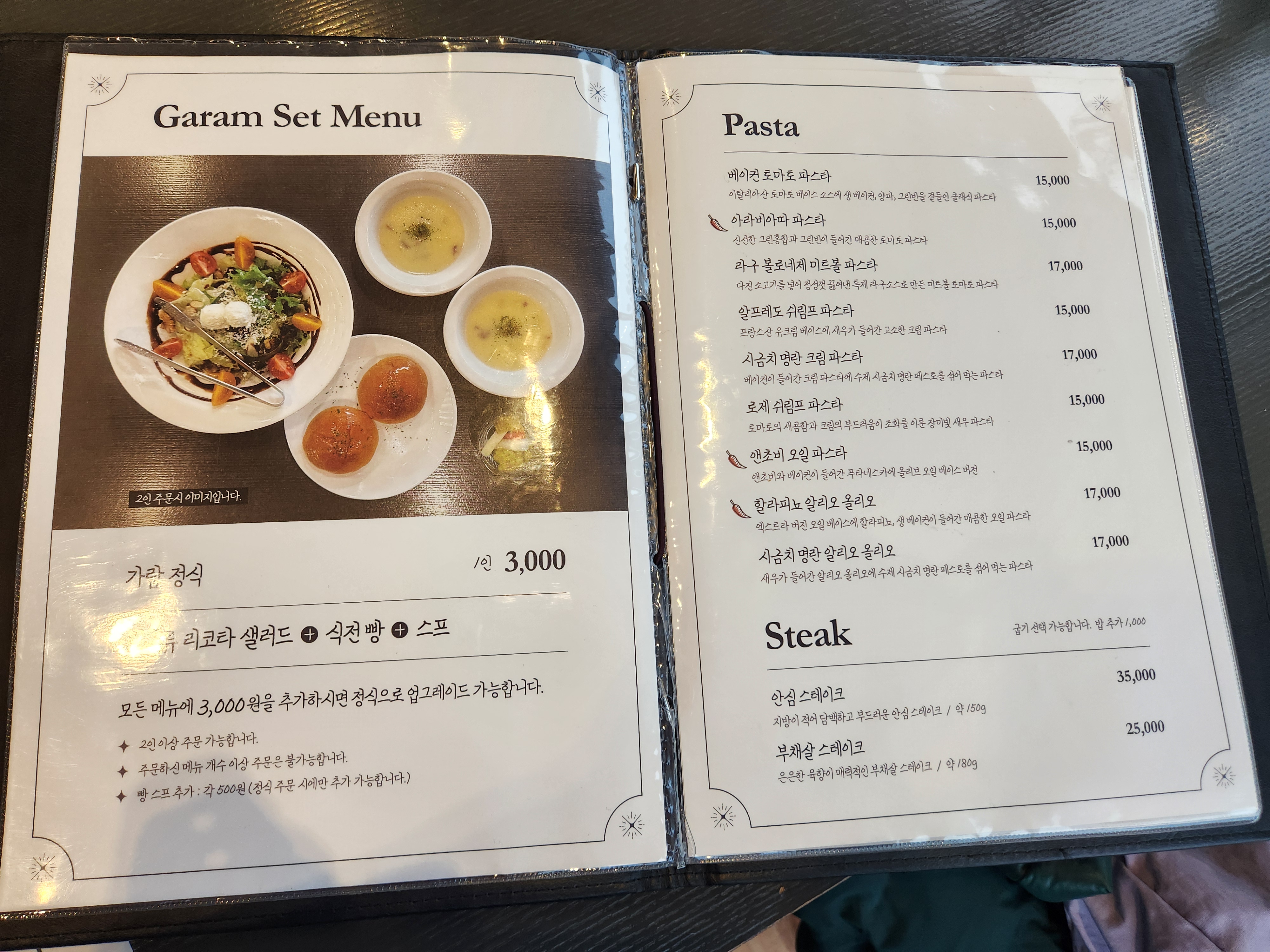 요즘 찾아보기 힘든 파스타와 스테이크 가격대에요.