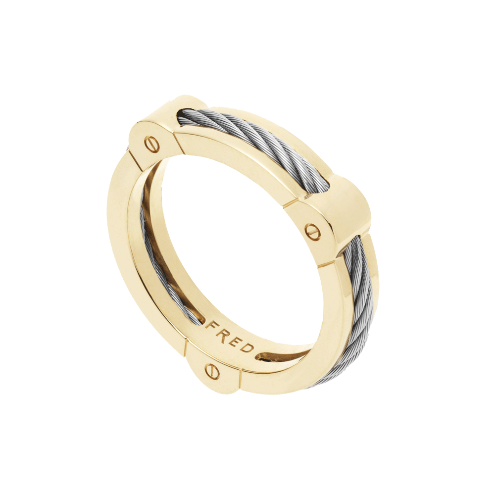 먼저 와이프는 포스텐 듀오 링을 선택했어요. 반지의 절반은 다이아몬드들로 촘촘히 들어가 있고 나머지 절반은 스틸케이블 형상으로 되어 있어요. FRED라는 사람이 쥬얼리를 만들때 바다를 너무 좋아해 해상 선박들의 Steel Cable과 Shackle을 모티브로 만들었다고 해요. 그래서 FRED의 팔찌 같은 것도 보면 Shackle 및 Cable 형상으로 되어 있어요.
