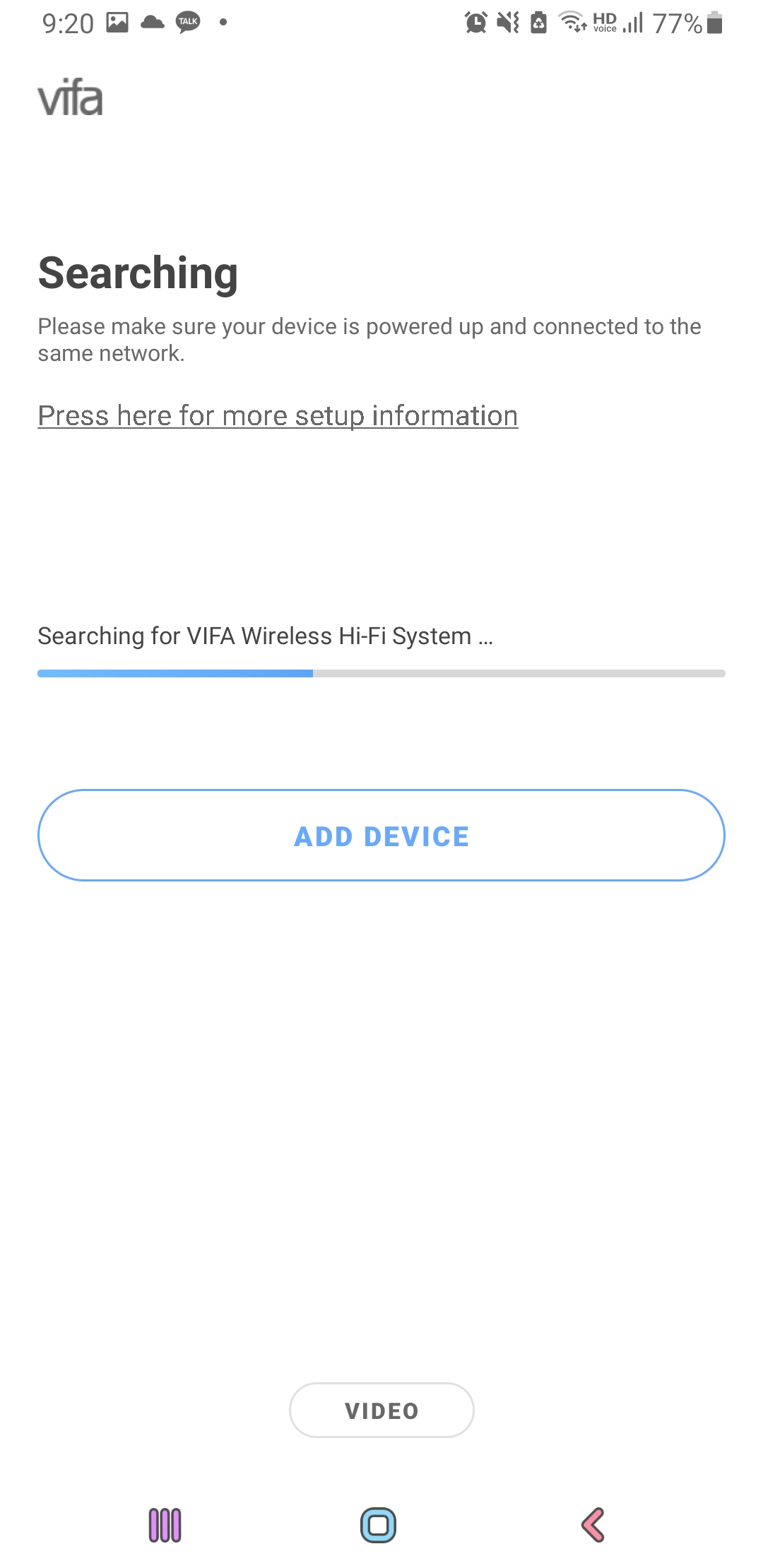 3. Add Device를 누르면 목록에 VIFA가 뜨는데 한번 클릭해줍니다. (클릭과 동시에 핸드폰 와이파이는 연결이 끊어집니다.)