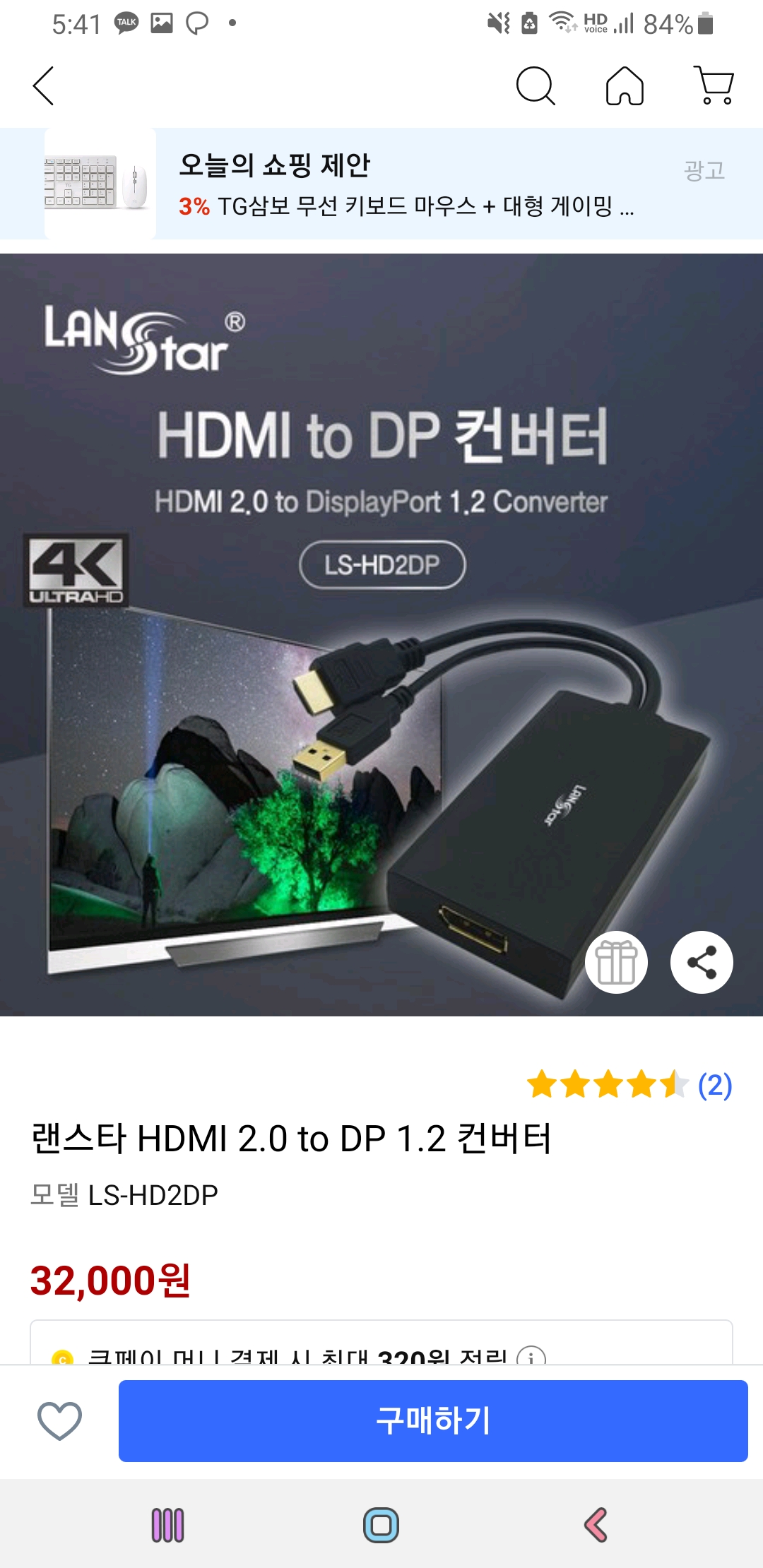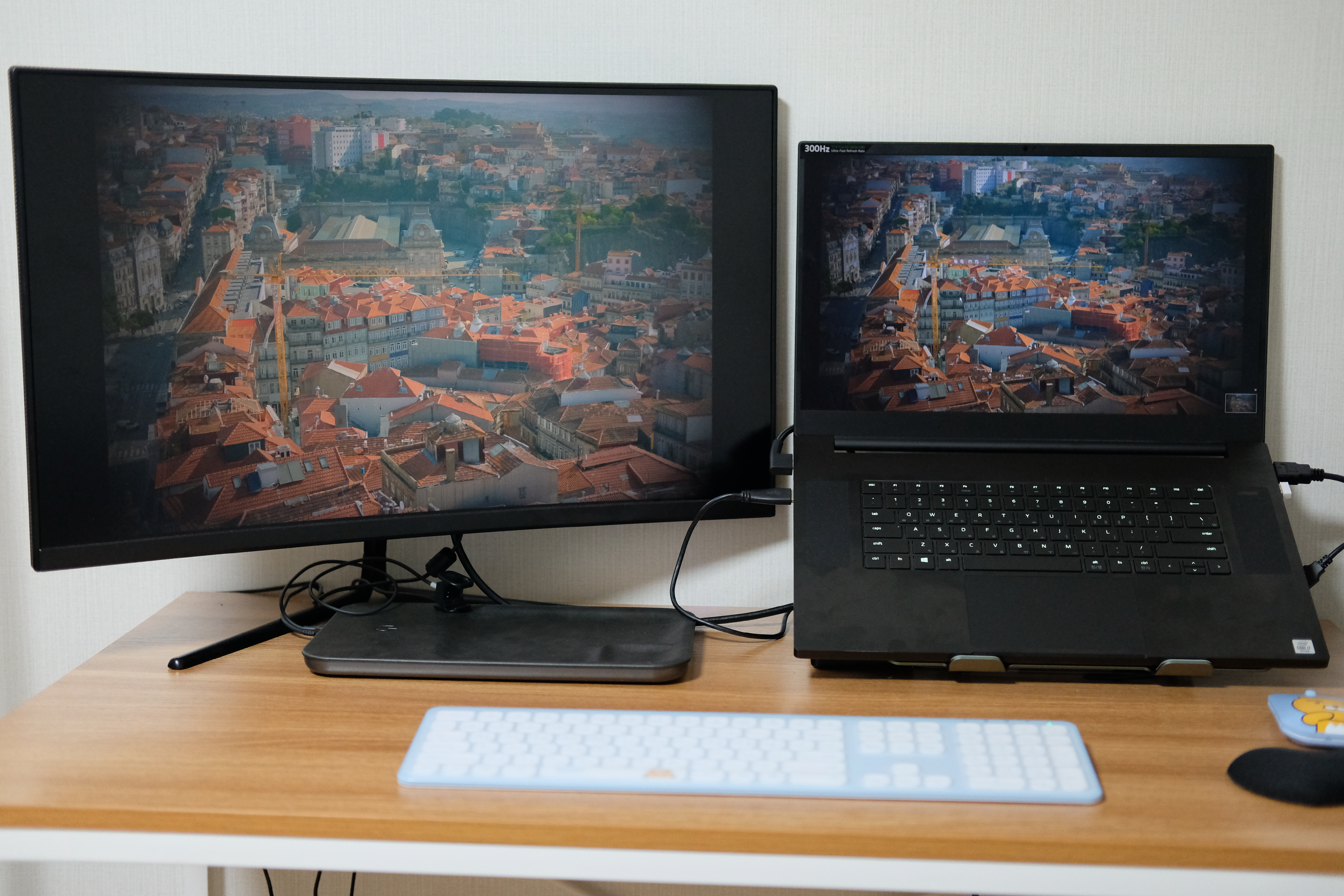 그리고 노트북 두 달 정도 사용후에 듀얼모니터 쓰고 싶어 모니터를 샀어요. 근데 이때 모니터를 잘 몰랐던 저는 멍청한 짓을 합니다. 한성컴퓨터에서 판매하는 68.6cm 퀀텀닷 1500R 리얼 165 게이밍 모니터를 샀는데. DP1.2 포트를 이용해 노트북과 모니터를 연결해야만 165Hz 구현이 되었습니다. 하지만 노트북엔 HDMI 2.0b 포트밖에 없었죠. 그래서 결국 HDMI to DP 포트 Converter를 구매해서 연결했습니다. 그래도 역시 165Hz는 안되더라구요. 모니터, 노트북 살때 연결포트 확인을 잘 해야겠어요. 결국 듀얼모니터 연결해서 gsync 기능은 못쓰고 있어요. 인터넷 폭풍검색 했는데도 방법 없는것 같더라구요.