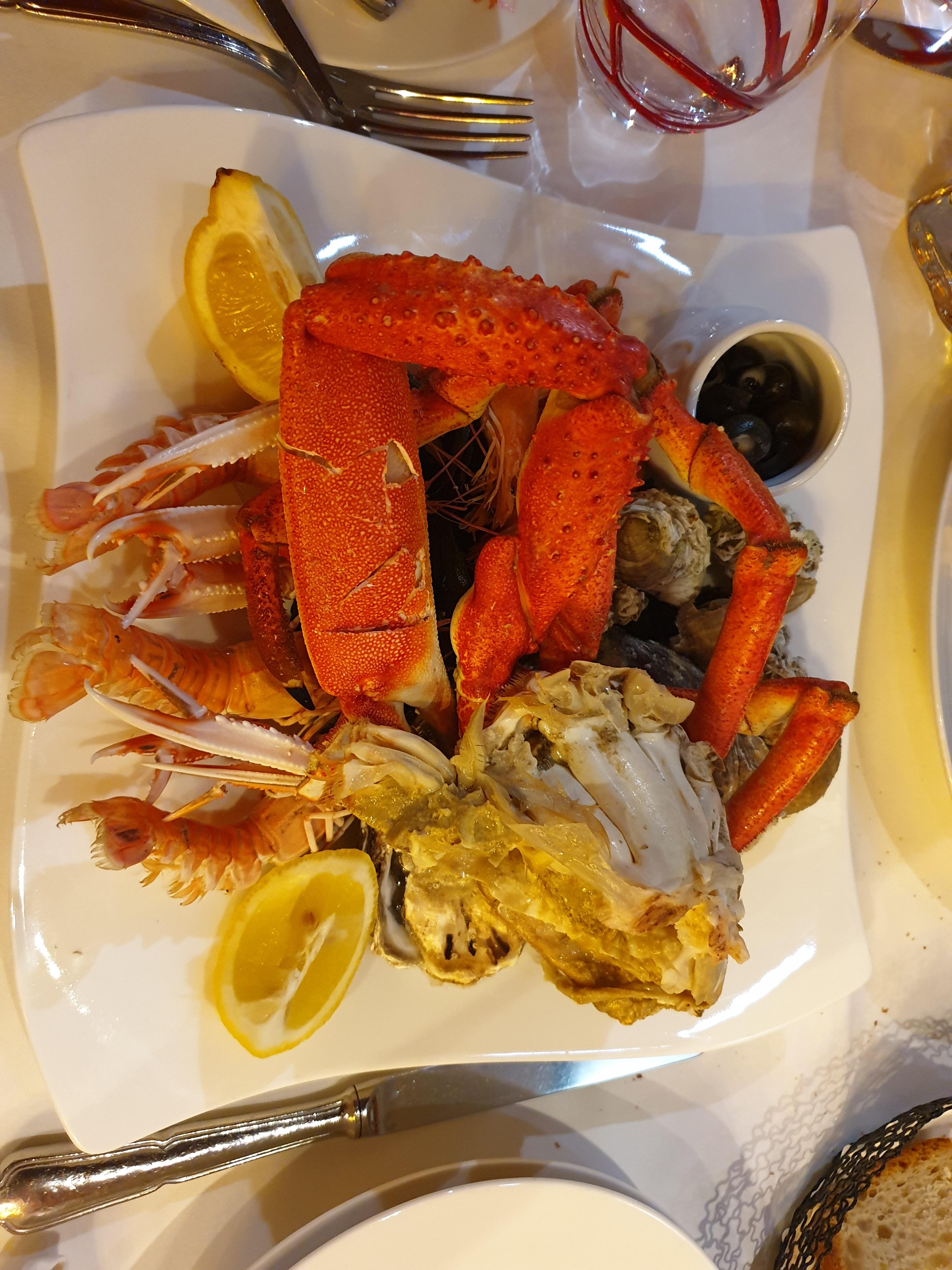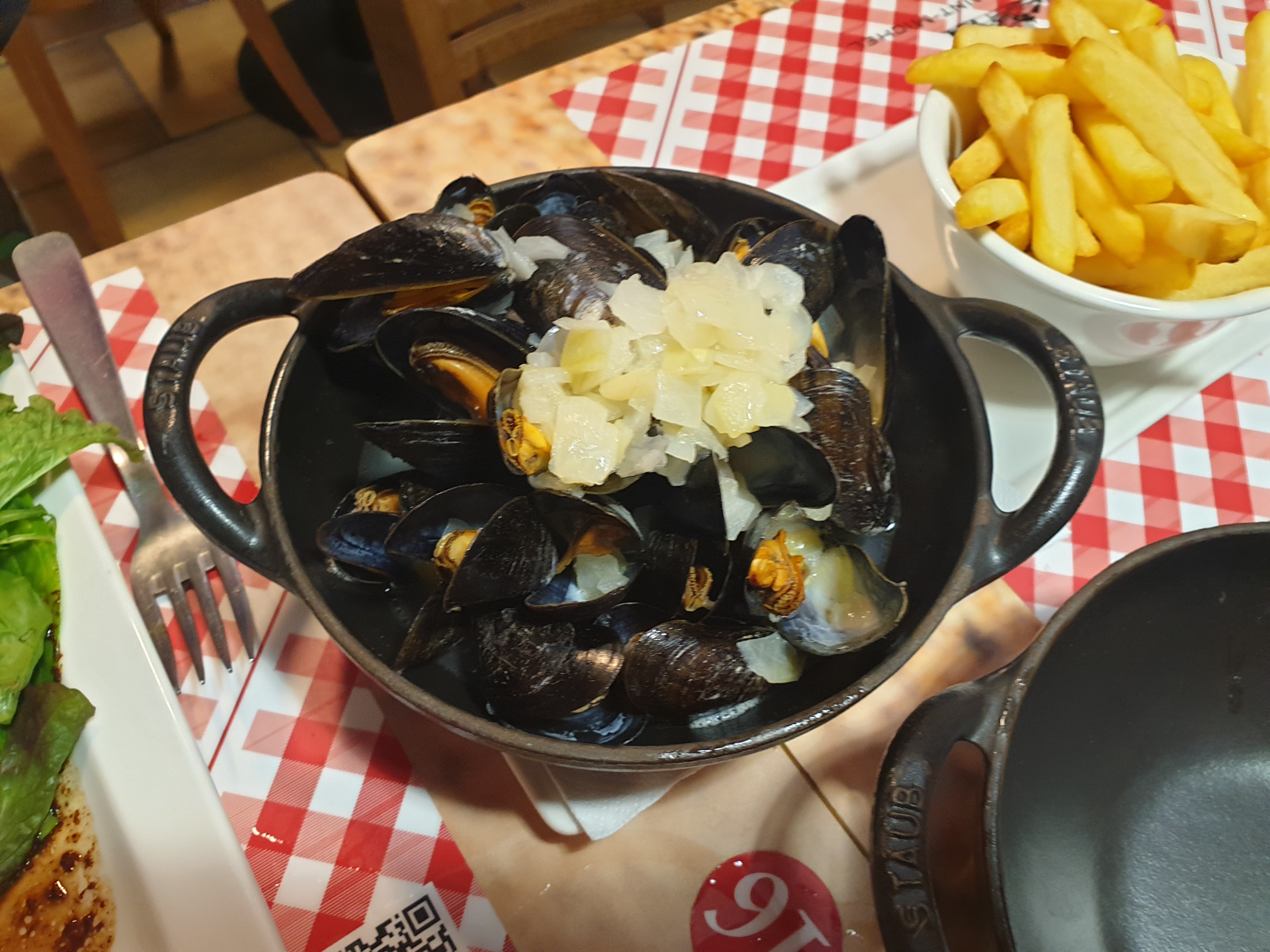 저녁은 호텔 주변에 열려 있는 곳으로 갔는데요. 해산물이 차가워서 인상적이었습니다. 저희는 열린 곳이 없어서 여기서 먹긴 했는데, 웬만하면 몽생미쉘 들어가서 식사하시길 권해요! 그리고 와이프는 Cidre라는 사과주를 많이 먹더라구요. 프랑스 북부 지방에서 사과가 많이 난다고 해요. 프랑크푸르트에서 먹었던 에페와인과도 약간 비슷한 맛이었어요.