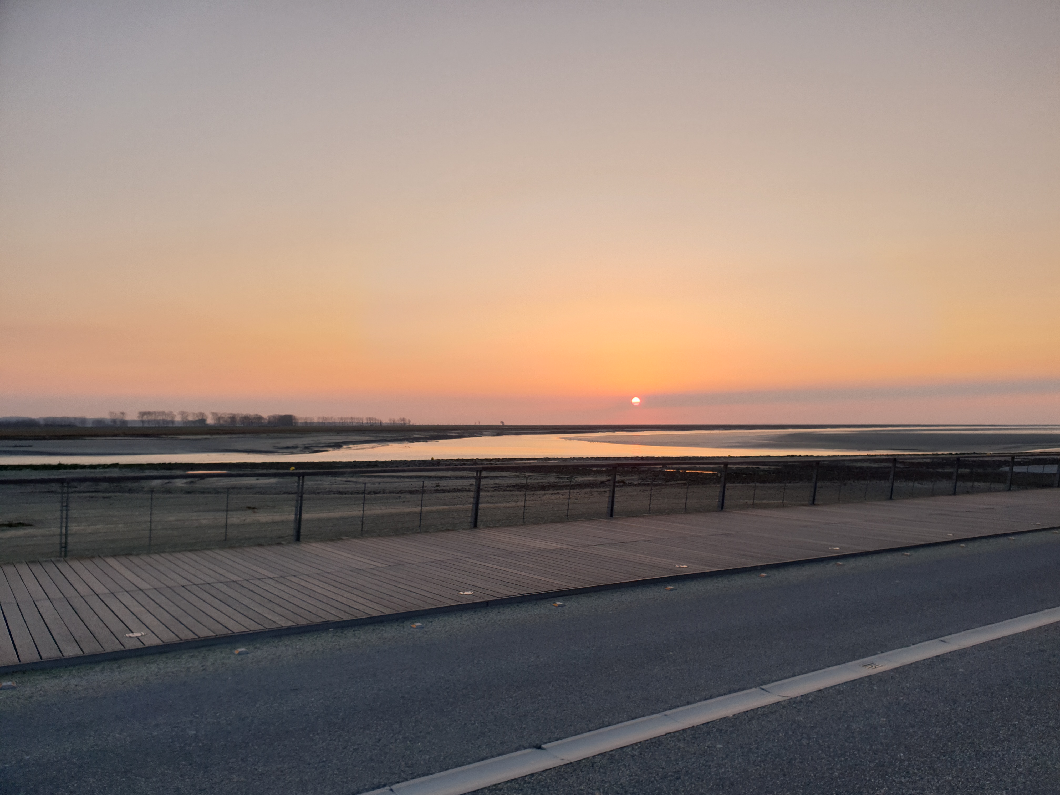 몽생미셸은 보통 당일치기로 놀다 가시는 분이 많은데요. 저희처럼 꼭 2박 이상 해보시길 추천합니다. 저희는 도착하자 마자 저녁을 먹고 천천히 몽쉥미셸까지 걸어갔어요. 호텔 밀집지역에서 몽쉥미셸까지 들어가는 셔틀버스도 있으니 참고하시기 바래요. 밤에는 수도원 내부로 못 들어갑니다. 하지만 산책하기에는 기가 막혀요. 바다 한가운데 떠 있는 듯한 몽생미셸로 천천히 걸어갔다 오시면 됩니다. 그리고 호텔주변에서 저녁을 먹었어요.