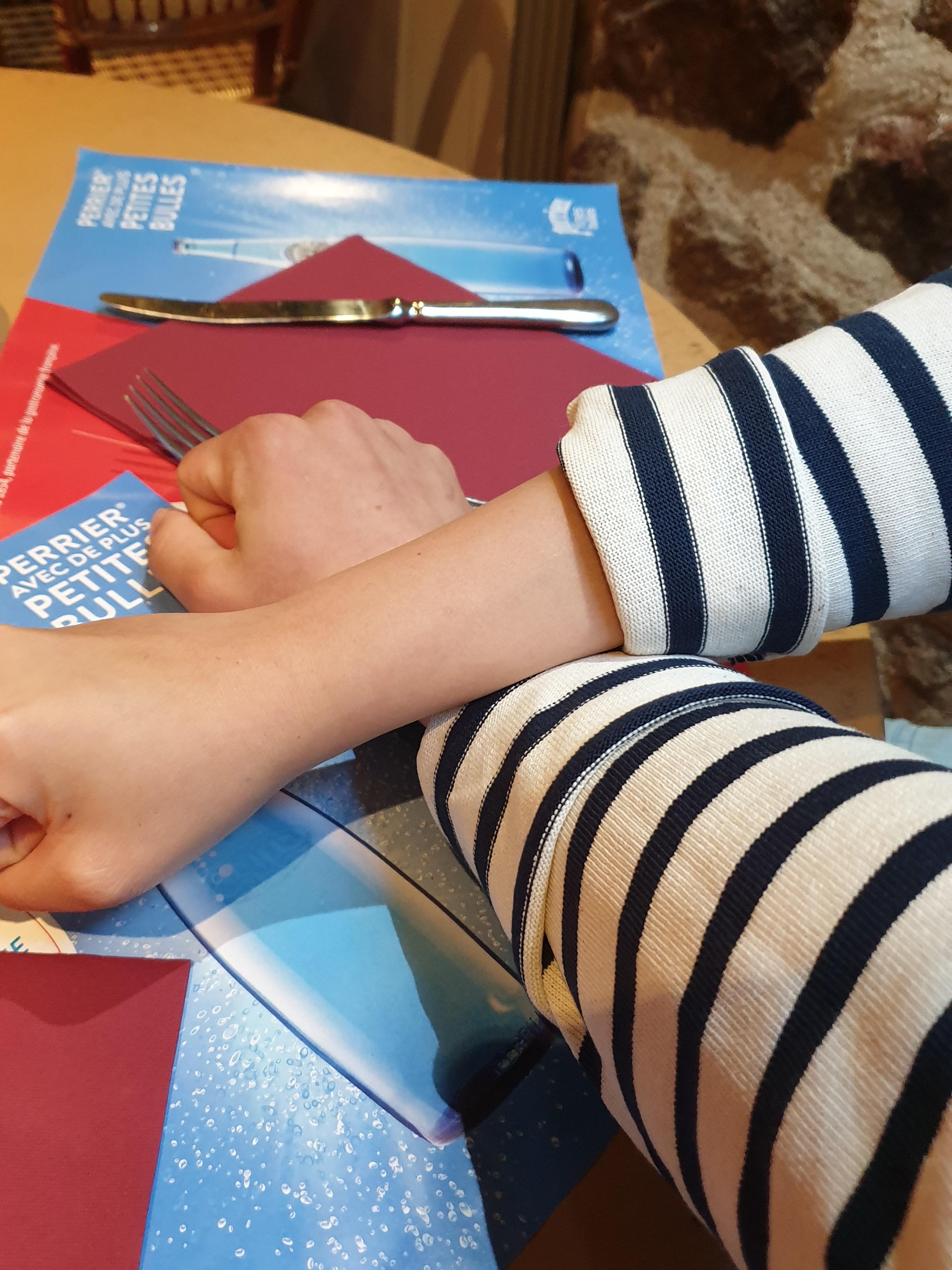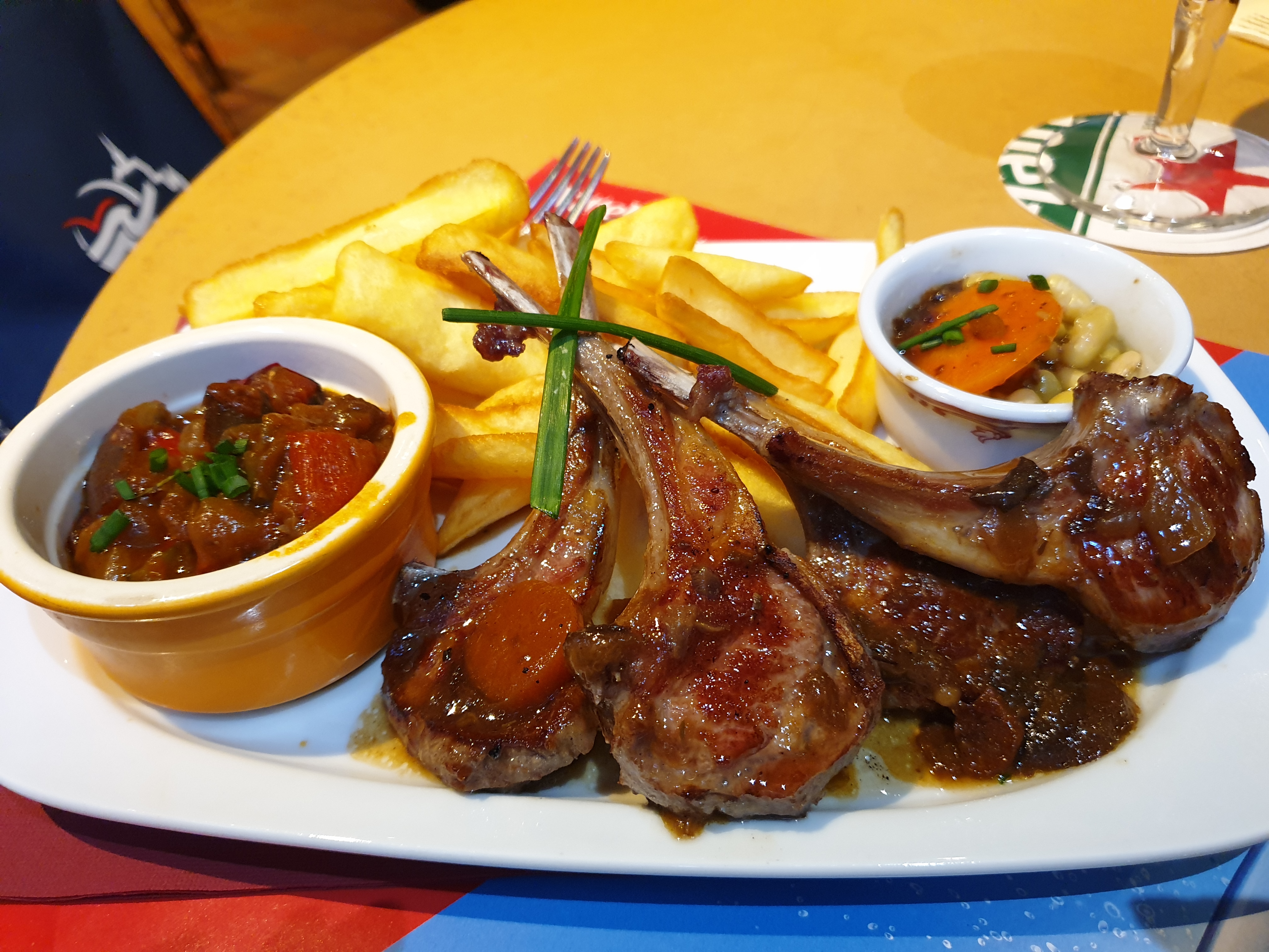 점심때 걀레뜨를 먹고 저희는 Saint James 옷을 커플룩으로 너무 맞추고 싶어서 몽생미셸 주변에 있는 전 매장을 다 돌아다녔어요. 차를 끌고 몽생미셸 밖에 매장도 가봤지만, 몽생미셸 내부에 있는 매장이 제일 좋더라구요. 나갔다가 다시 돌아와서 결국 몽생미셸 내부에서 옷을 구매했습니다. Saint James 옷 입고 다니는데 어떤 프랑스 아저씨가 이쁘다고 어디서 샀냐고 막 물어보고 그랬어요. 그리고 또 여기서 저녁을 먹는데 인생 양고기를 먹었어요. 가게 아저씨가 그러는데 몽생미셸 주변에서 키운 양이라고 하더라구요. 양 비린 맛이 1도 없어요.