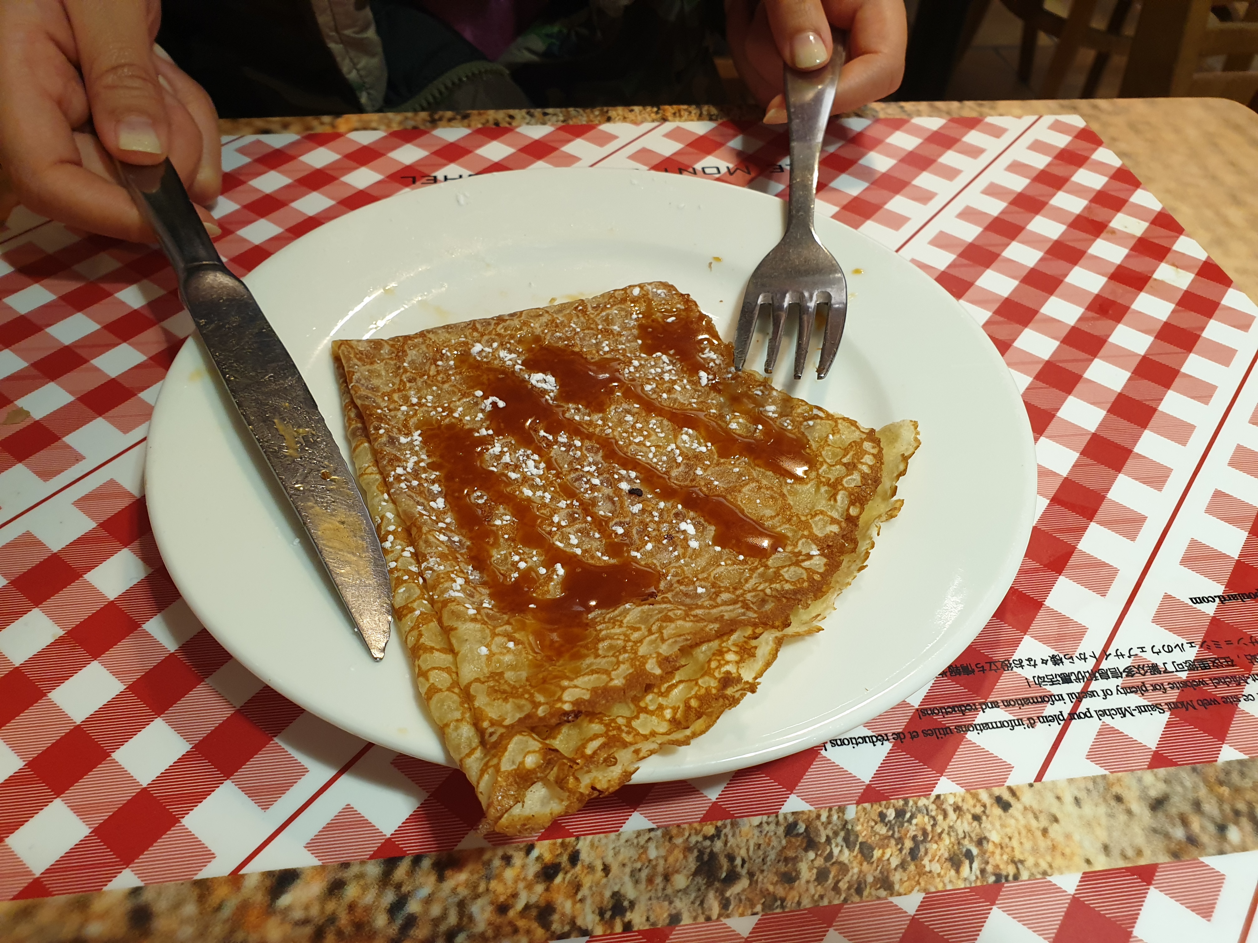 몽생미셸 안에서 먹은 것들이에요. 아래 사진이 걀레뜨(Galette)입니다. 그리고 홍합탕도 먹었는데 생각한 맛이 아니었어요. 비추.
