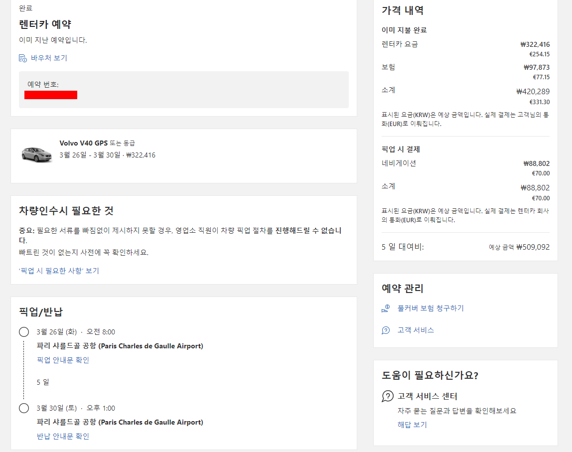 다음날 아침 일찍 일어나 저는 샤를드골 공항에 렌트카를 받으러 갔습니다. 이미 프랑스로 오기전 한국에서 모든 예약을 마치고 왔었어요. 사용했던 사이트는 Rentalcars.com이었어요. 4박 5일 렌트하는데 총 51만원 정도 들었네요. 해외에서 렌트할시 무슨 일이 생길지 모르니 당연히 풀커버 보험도 들으셔야겠죠? 저는 네비게이션도 필수로 신청했습니다. 그리고 당연히 국제면허증, 여권은 챙기셔야합니다. 해외에서 렌트할때마다 느끼는 거지만 항상 렌트할때마다 제가 선택한 차를 꼭 받는 법은 없었어요. 대부분 동급의 차를 주더라구요. 마지막으로 여기서 매우 중요한 건, 공항에서 렌트카를 받으러 찾아가는 건 쉽습니다. 하지만 꼭!!!! 공항 렌트카 반납장소 핸드폰에 저장해두세요. 구글지도에 꼭이요. 저는 저장 안해두었다가, 네비 위치도 모르겠어서 반납할때 공항에서 30분 정도 돌았어요. 공항 지하주차장까지 들어갔었네요. 특히 샤를드골 공항 방향 찾기 헬입니다. 너무 혼잡해요.