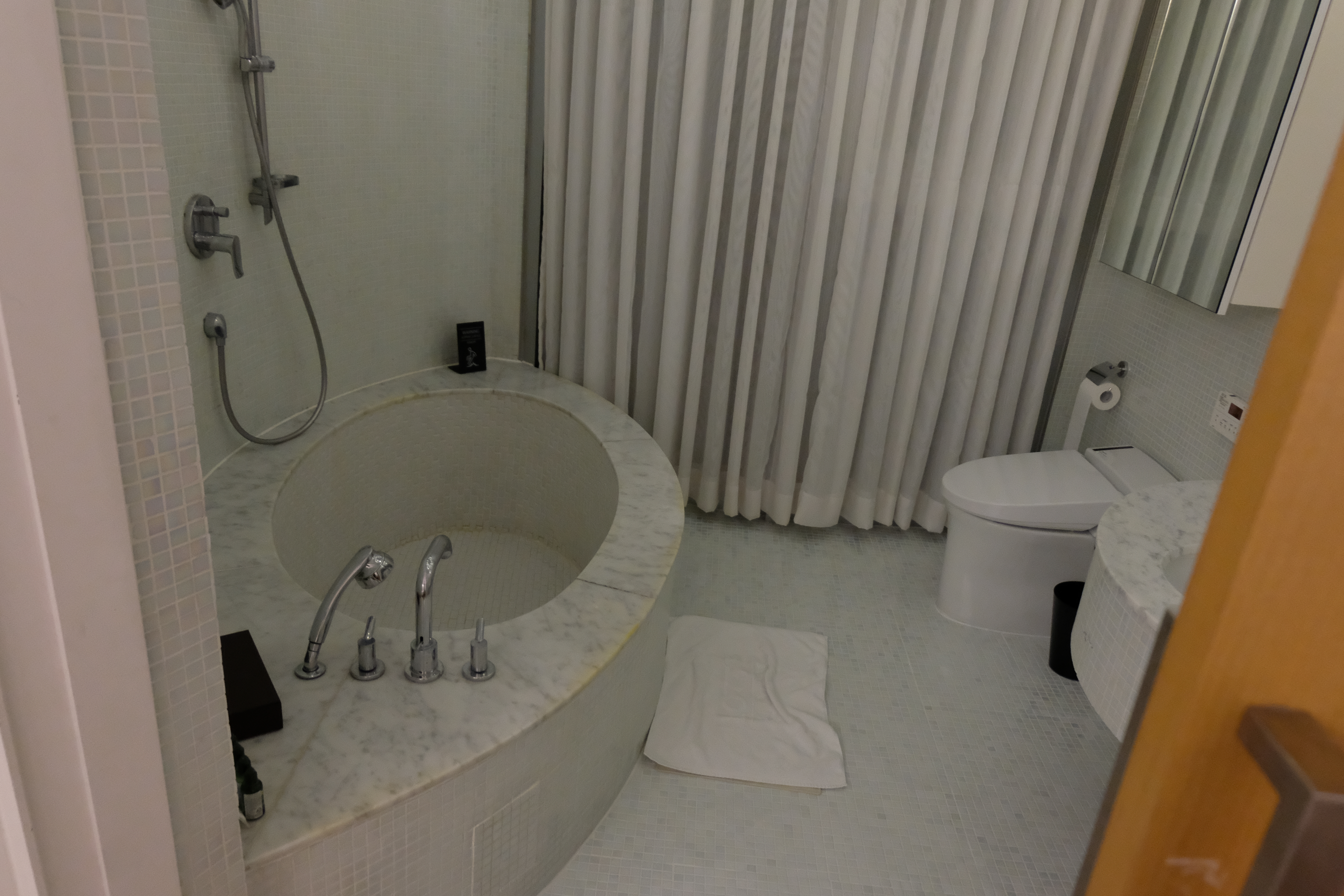 욕실의 저 작은 자개 색깔의 타일들이 너무 좋았어요. 욕조도 넓어서 작은 수영장 같은 느낌이에요. 변기도 커버 올릴때였나 볼일 보러 갈때마다 클래식 같은게 은은하게 흘러나오는데 신기했습니다 ㅎㅎ 화장실 갈때마다 기분이 좋아요. 약간 리조트가 낡은 감이 조금 있긴 했으나 사용하는데 불편하거나 불쾌한것 전혀 없었고 좋았습니다.