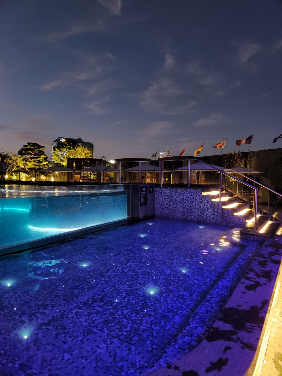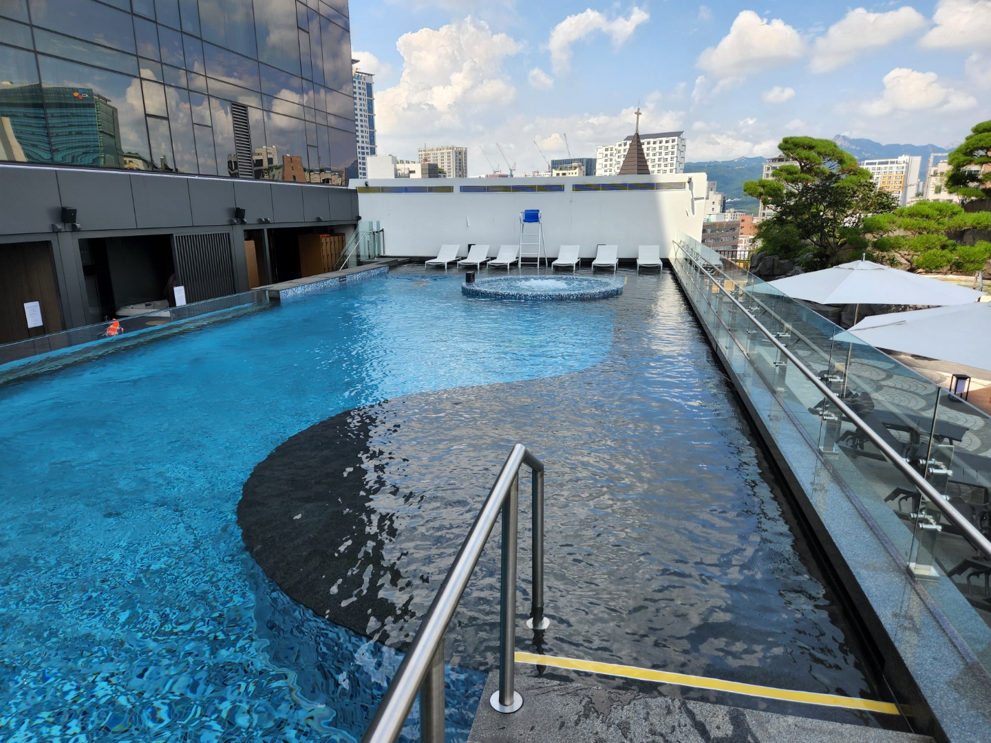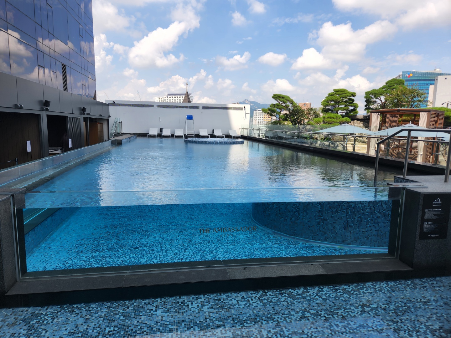 저희는 평일에 호텔에서 투숙을 했고, 레이트 체크아웃을 이용하여 사람이 없는 시간대에 수영장을 즐길 수 있었어요. 점심 시간대 (12:00 - 13:00, 14:00 - 15:00) 에 사람이 아무도 없어서 수영장에서 저희 부부 두명만 놀았어요. 나중엔 너무 수영하니 힘들더라구요. 그리고 여기 수영장의 시그니쳐는 바로 수영장 사이드가 유리여서 내부가 보인다는 거에요! 저기서 잠수하면서 사진 엄청 찍었어요. 와이프가 잠수하면서 계속 양 손가락 욕을 날려서 사진만 후딱 찍고 창피하니 모른척 해줍니다. 그리고 밑에 사진처럼 자쿠지가 한개 별도로 있는데요, 물이 순환이 되는건지 잘 모르겠더라구요. 되고 있는거겠죠. 물은 따뜻했습니다. 수영장도 따뜻했어요. 사람 많은 시간대에는 아이들도 꽤 있는데 애기들이 부모님이랑 즐거워 보이는게 저도 좋더라구요. B1층 실내수영장에도 한 번 가서 수영을 좀 하다 왔는데 오랜만에 하니 재미있더라구요 ㅎㅎ 레인이 총 3개 있는데, 1개는 회원 전용이라 투숙객 사용 불가, 1개는 수영 전용, 1개는 레저 전용인데 아이들이 놀고 있더라구요 . 꽤 넓어요! 여기 호텔은 정말 수영장이 좋았습니다.