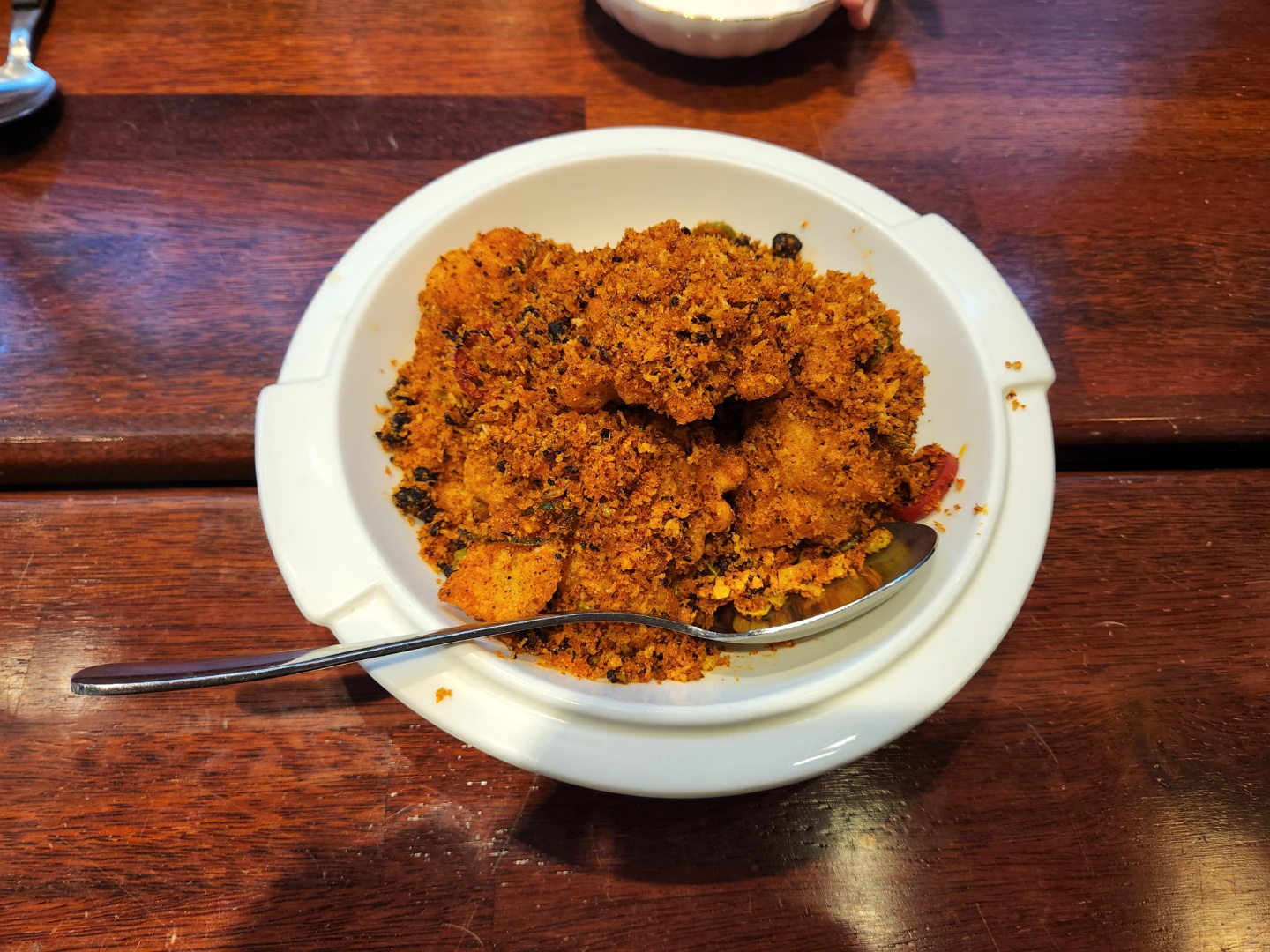여기는 진짜 대박 맛있었어요. 가격은 좀 나가는 편이에요. 예약이 꽉 차 있어서 못 먹을 줄 알았으나, 5시30분 정도에 일찍 갔더니 비예약 테이블에 앉을 수 있었어요. 너무 배고파서 이성을 잃고 짬뽕을 시켰는데, 다른 색다른 걸 먹어볼걸 하는 아쉬움이 있었어요. 저희는 누룽지탕에, 삼선짬뽕, 마늘새우를 시켜먹었어요.(다 맛있었어요) 다음에 꼭 방문해서 다른것도 먹어볼거에요. 밥 먹으면서 벽에 붙어 있는것 보고 알았는데 세트메뉴?같은게 있더라구요. 파리머리볶음이랑 참깨오리 꼭 먹으러 재방문 할거에요. 제 느낌상 일 하시는 분들도 친절했어요. 그리고 제가 갔을때 영수증 리뷰하면 스벅 기프티콘 5000원 줘서 바로 했어요. 이 날은 술이 별로 먹고 싶지 않았는데, 좋은 안주에 고량주 못 먹은 아쉬움이 좀 있네요.