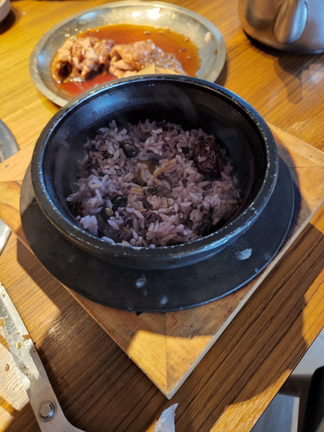 토트넘 선수들이 방문했다는 그 곳. 양념갈비는 맛있었어요. 그런데 뭔가 서비스가 좀 아쉬웠고, 점심 시간이라 정신 없으신지 주문하고 받기가 어려웠어요. 일하시는 분들 불러도 반응도 잘 없고, 고기도 그냥 직원들이 바빠 보이고 안 구워주는 것 같아서 직접 구워먹었어요. (그런데 이정도 가격이면 보통 다른데는 구워줬던것 같은데 흠..) 가격대비 좀 아쉬운게 있었네요. 근데 또 밥 먹는 후반에 친절하신 직원분도 계시더라구요 케바케인듯 한것 같아요. 나중에 옆 테이블 보니 고기보다 갈비탕 같은게 맛있어 보였어요. 그리고 솥밥의 누룽지를 원했는데 밥이 안 눌러붙어 있더라구요. 밥 푸고 물 붓기 전 좀더 뚜껑을 덮어놨어야 하는건지 잘 모르겠네용. 사람 많이 없는 시간대에 가면 좋을것 같아요. 비빔국수보단 된장찌개가 좋았어요.