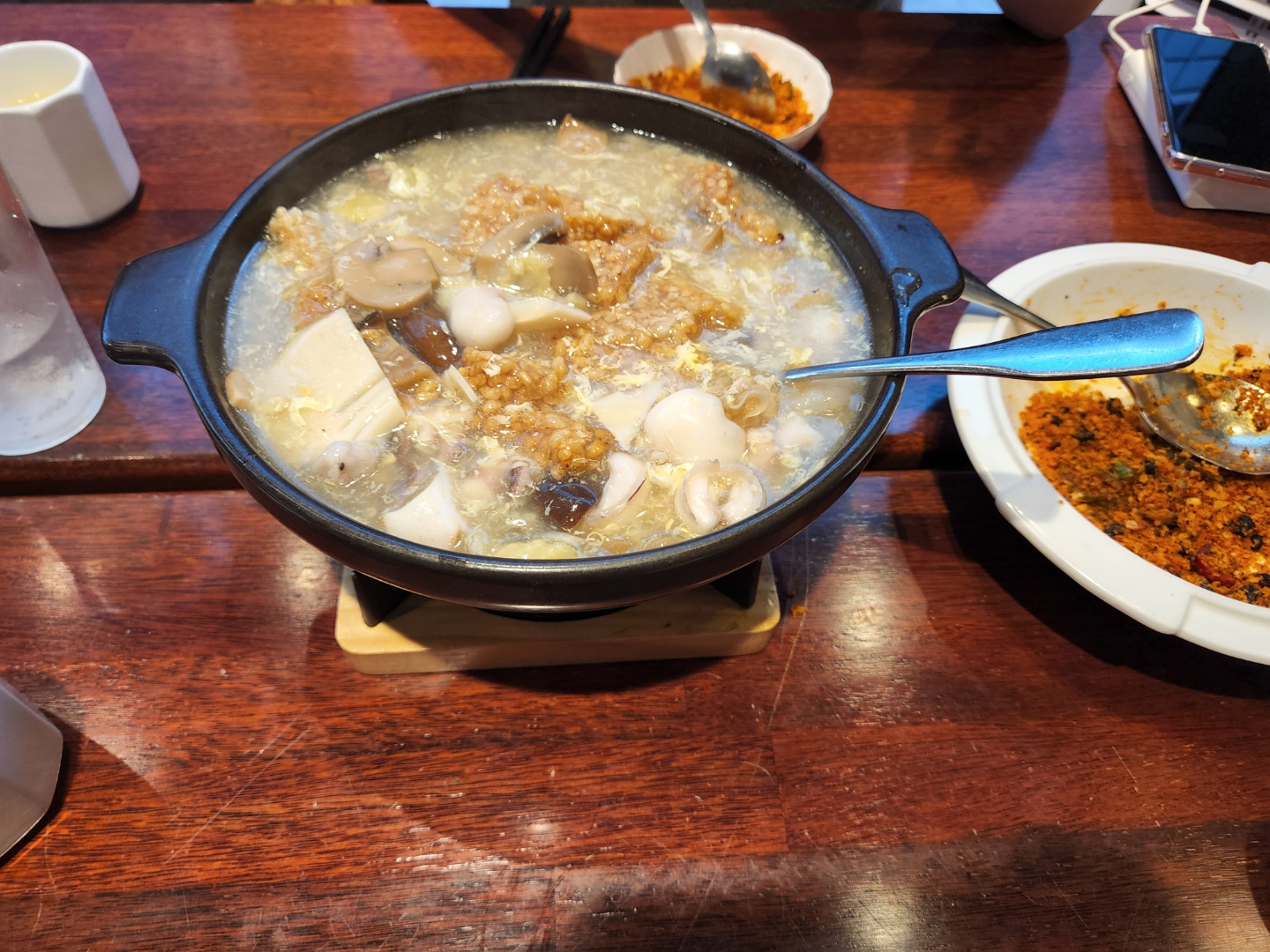 그리고 먹기 바빠서 사진을 못 찍었는데, 와이프가 여행 첫날 저녁 꼭 몸보신을 해야한다며 찾아간곳이에요. 가서 해신탕을 먹었어요. 2인분 기준 35000원 닭 두마리, 낙지, 새우, 전복 그리고 죽까지 먹을수 있어요. 옛날 대학교 앞에서 자주가던 음식점이 떠올랐어요. 할머니/할아버지댁에 간 느낌. 맛있고 따뜻하고 건강해졌어요. 국물 계속 퍼 먹으면서 크으 크으 시원하다 이러면서 먹고 나왔어요.