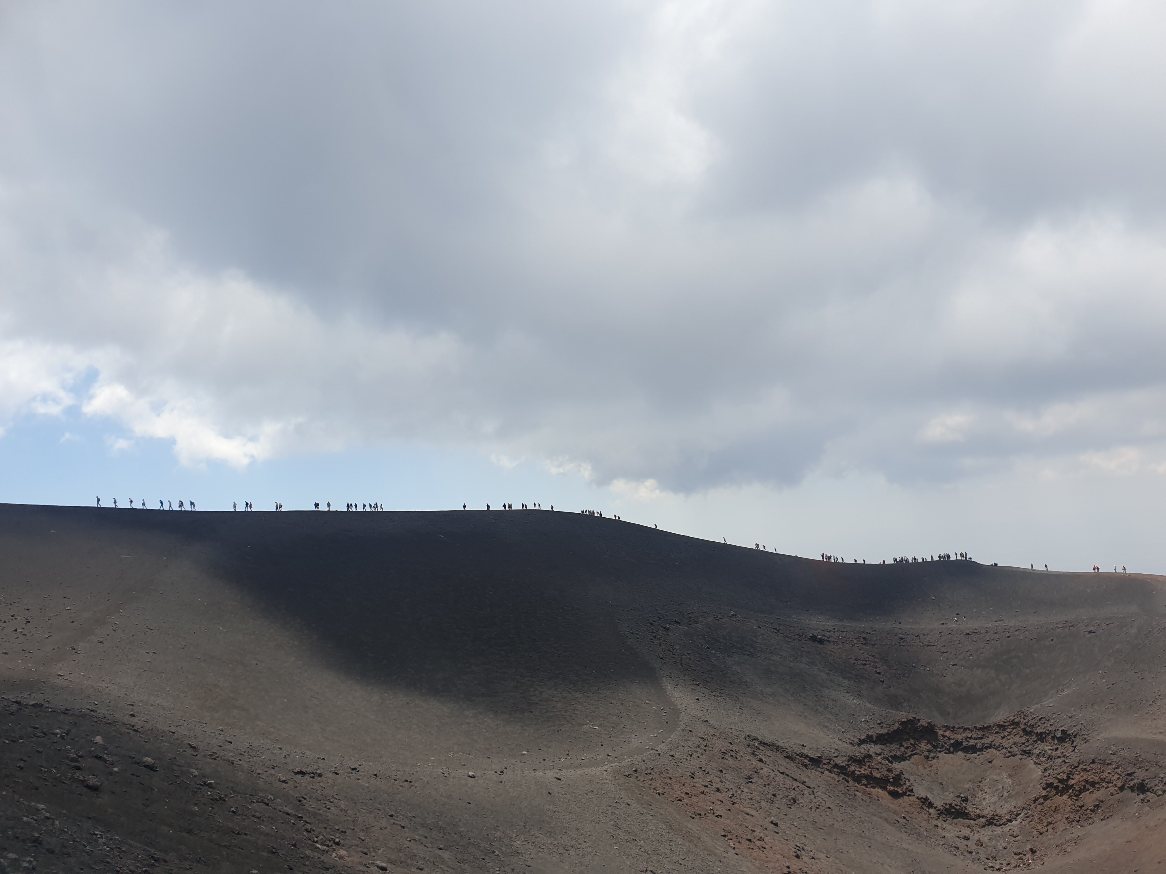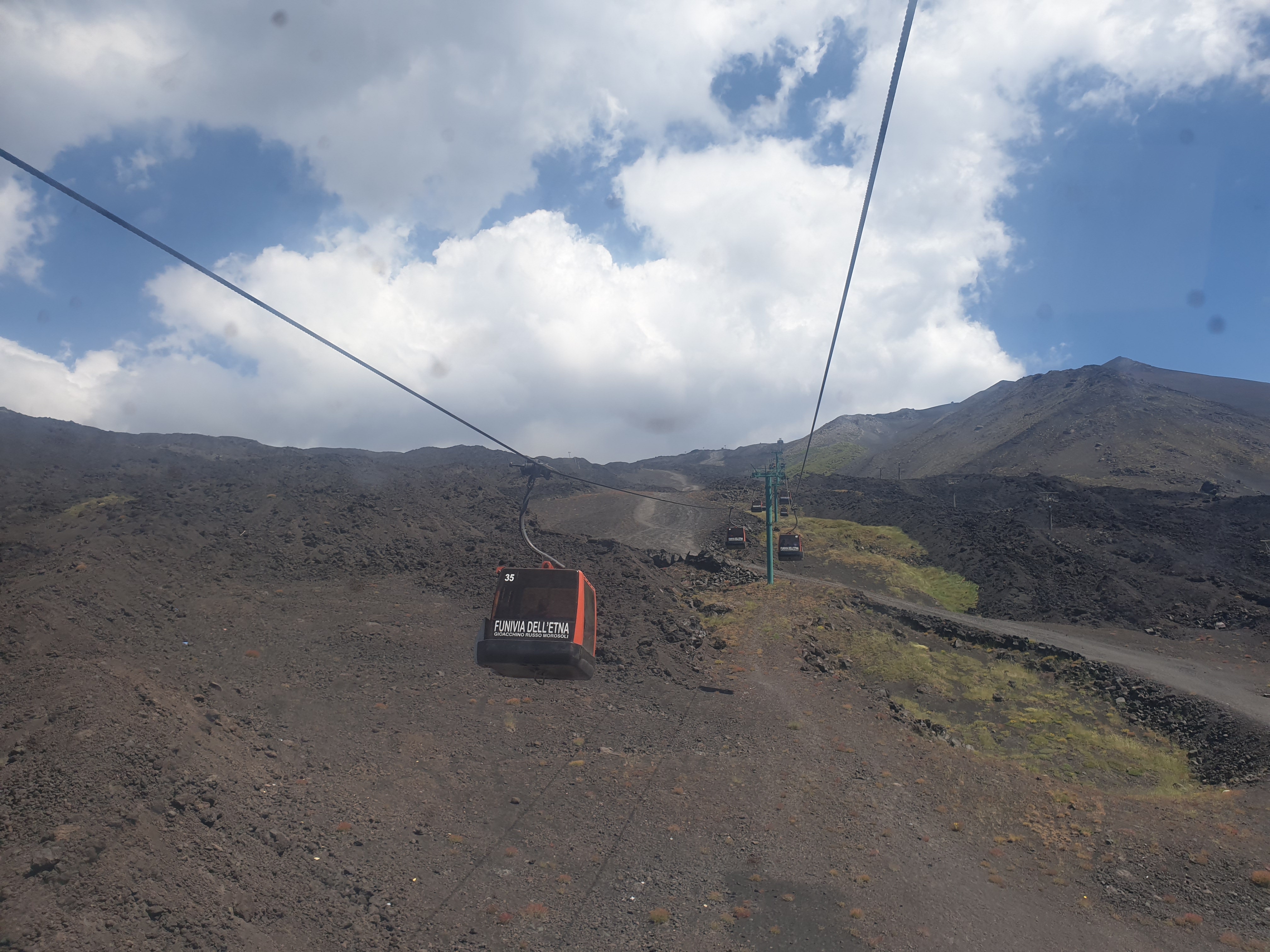 동굴을 탐사 한 후, 에트나 화산 입구 주차장에 도착합니다. 입구에 화장실 등 편의시설들이 있고, 이 곳에서 케이블카를 탈지 걸어서 오를지 결정할 수 있어요. 제 기억이 케이블카 가격이 꽤 비쌌던걸로 기억하는데 동행자들 중 저희 커플만 케이블카를 탔습니다. 걸어서 올라가는 것도 운치가 있고 좋을것 같긴 해요. 하지만 시간상 걸어서 가면 정상에는 못 갔던걸로 기억해요. 이왕 왔는데 화산 정상 찍고 와야죠. 케이블카를 타고 올라가면, 그 곳에서 또 엄청 큰 오프로드카를 타고 올라야 정상에 도달할 수 있어요. 에트나 화산은 현재 활동중인 활발한 화산입니다. 분화구도 한 번 구경해 줍니다. 정말 생경한 광경이죠.