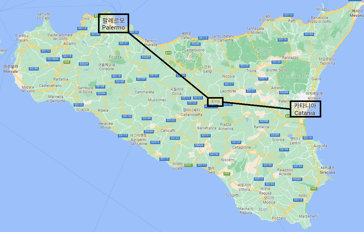 팔레르모에서 카타니아로 이동