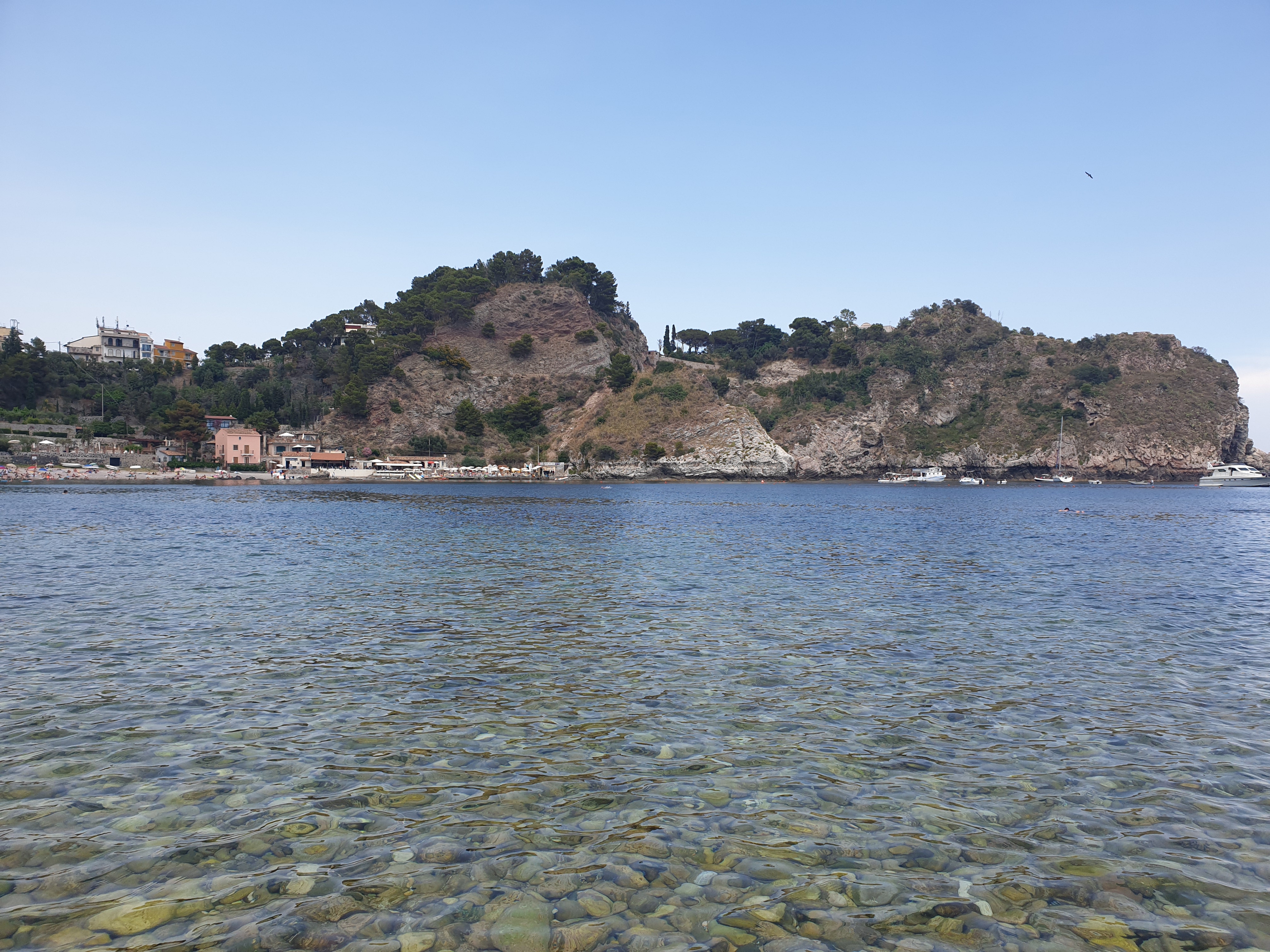 타오르미나로 향하기 전, 동남아투어?처럼 관광 쇼핑 샵을 데려가더라구요. 당연히 막 물건을 사라고 강요하거나 눈치를 주지 않았어요. 구경만 해도 재미있는 곳이었어요. 여기서 저희는 스테이크 씨즈닝도 사고 특이한 꿀도 사고 한국까지 가져와서 정말 맛있게 잘 먹었어요. 쇼핑을 잠깐 해준 후 타오르미나에 있는 Isola Bella 해안으로 향했습니다. 몽글몽글한 돌이 있는 시원한 해안가에요. 물이 참 맑죠. 시간이 넉넉했다면 들어가고 싶었을 거에요. 저희는 발만 담구고 놀았습니다.