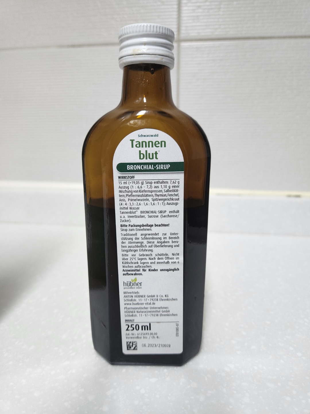 - 제품명 : Tannenblut Brochial Syrup (전나무 추출액으로 만든 기관지 시럽)
