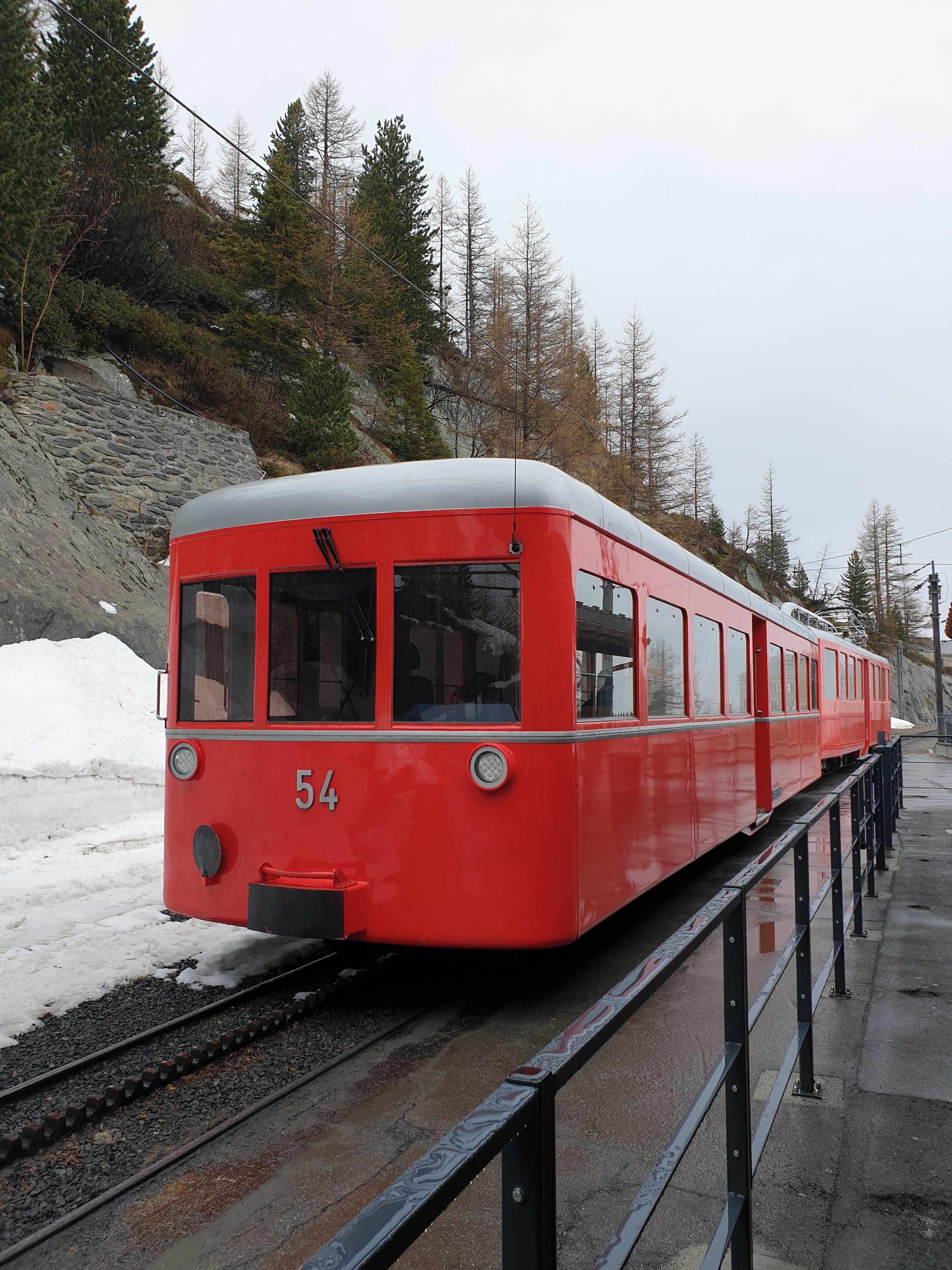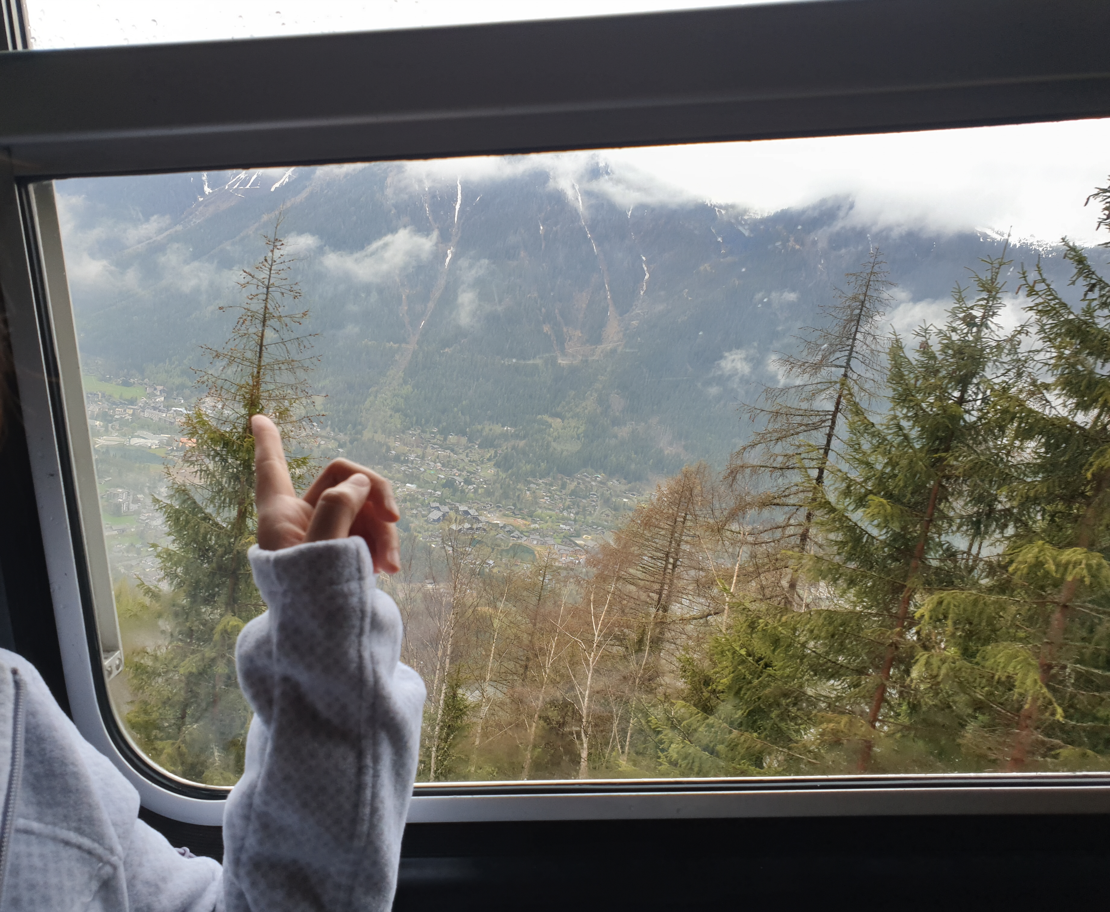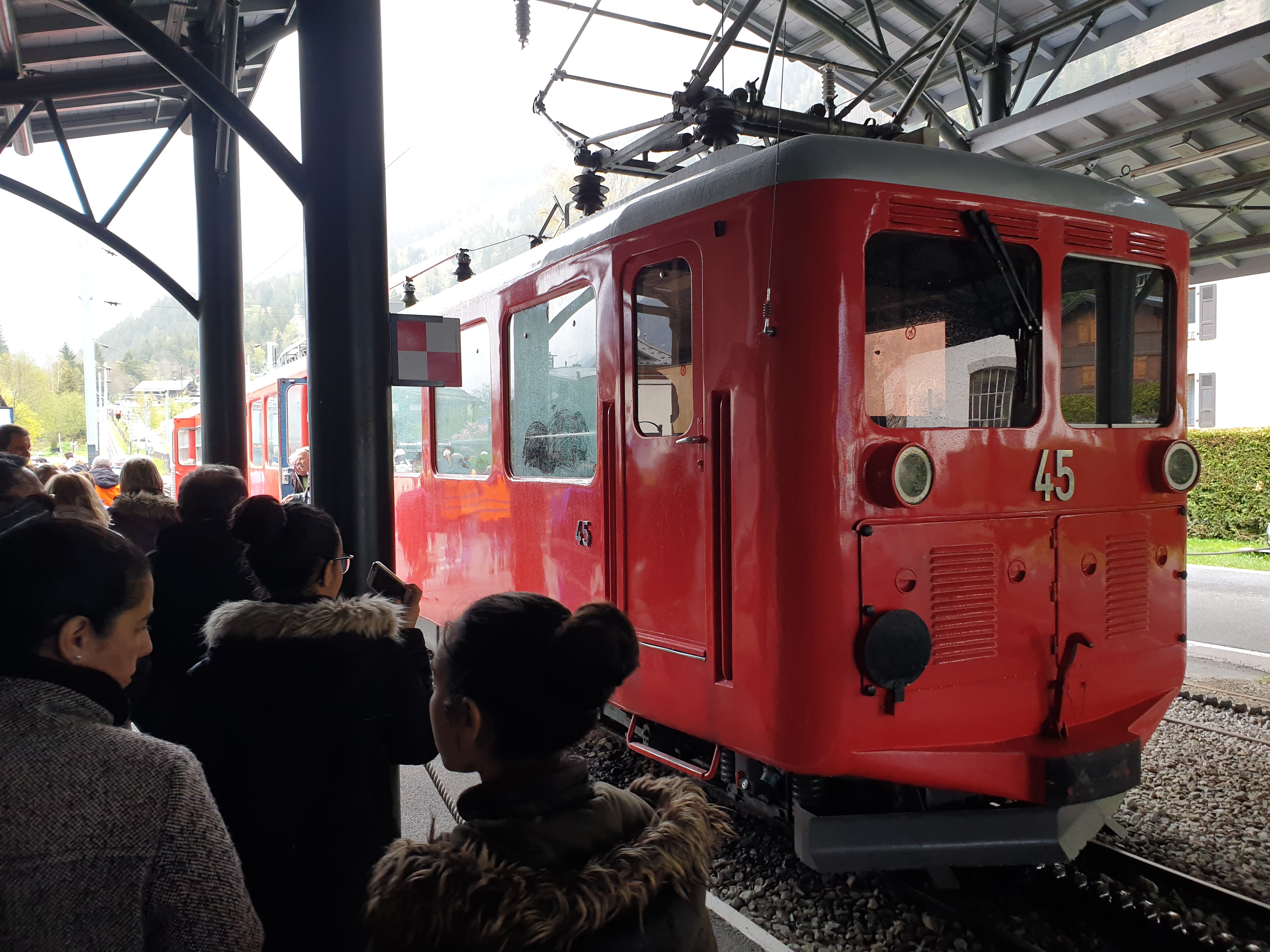 몽블랑에 도착한 후 원래 계획 대로라면.. L'Aiguille du Midi로 가는 케이블카를 타고 몽블랑을 보기 위해 올라갔어야 했지만, 저희가 갔던 날은 아쉽게도 비가 오고 날씨가 매우 안 좋아, 케이블카를 타고 올라가도 몽블랑을 못 본다고 하더라구요.ㅠㅠ 그래서 케이블카는 포기하고 일정을 바꿔, Chamonix-Mont-Blanc역에서 기차를 타고 Le Montenver역으로 올라가 설산을 보고 왔어요. 참고로 L'Aiguille du Midi에서 Charmonix-Mont-Blanc 기차역까지는 걸어서 10분 정도에요. 이 날은 많은 사람들이 기차역으로 몰렸어요. 빨간 기차를 타고 미지의 산으로 올라갑니다.
