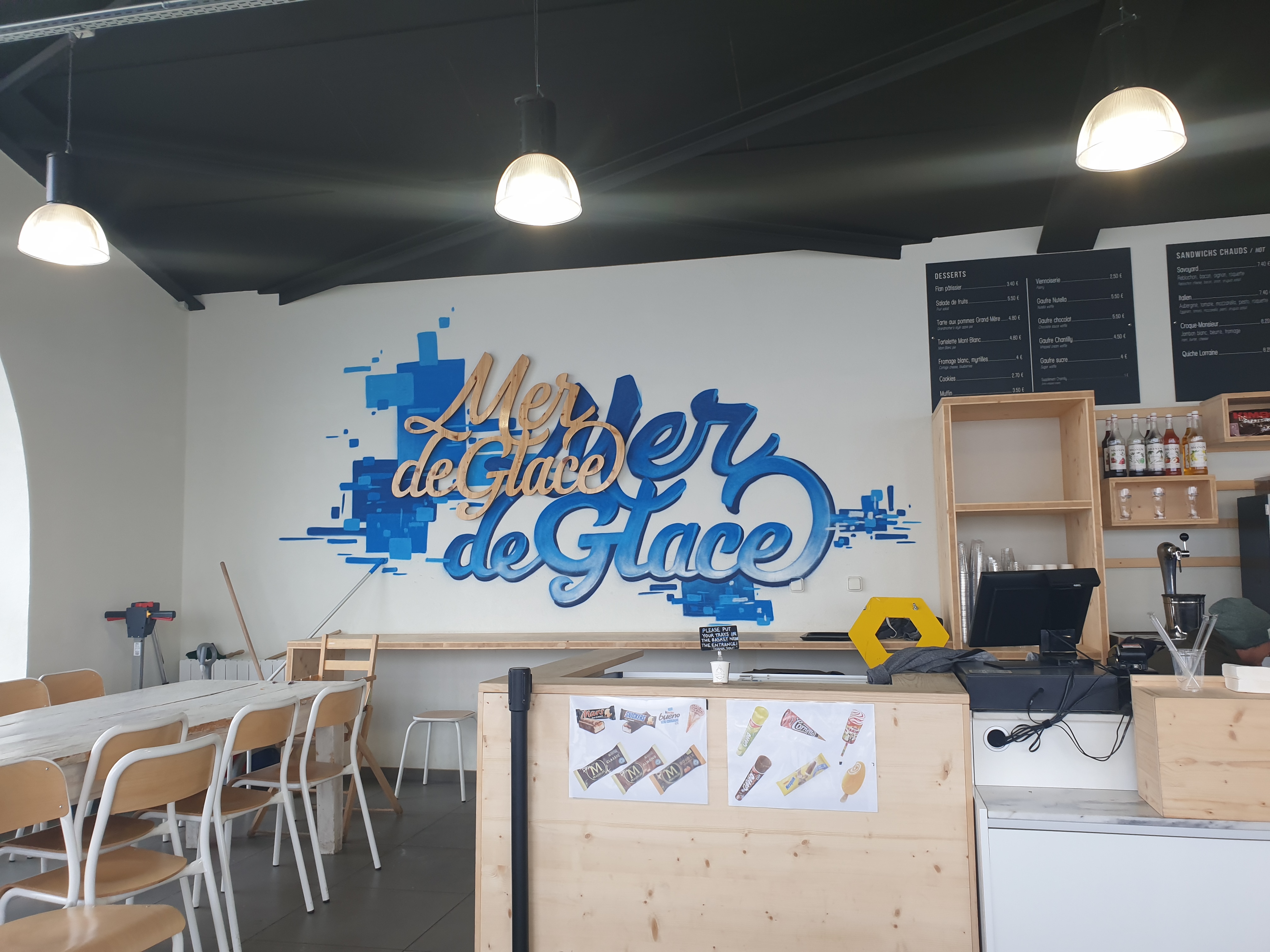 위의 사진처럼 2010년 당시 빙하 높이가 적힌 푯말도 있었는데 정말 많이 녹았다 싶더라구요. 세계적으로 탄소저감이 시급한것 같습니다ㅠ 그리고 케이블카에서 동굴입구까지 걸어간느 구간이 꽤 길었던 걸로 기억해요! 동굴에서 돌아온 후 정말 너무 추워 Le Montenver역에 있는 카페로 바로 들어가서 과자랑 커피를 마셨어요. 아래처럼 생긴 곳인데 간단한 먹거리를 팔고있어요. 여기서 좀 몸을 따뜻하게 한 후 기차를 타고 다시 내려옵니다.