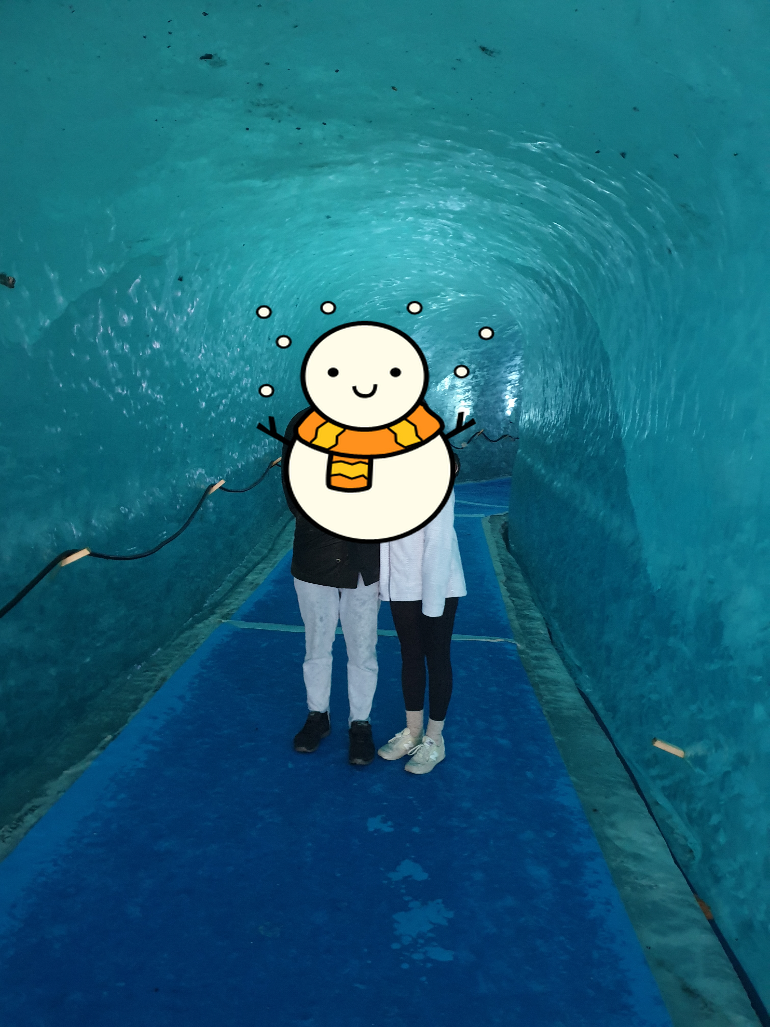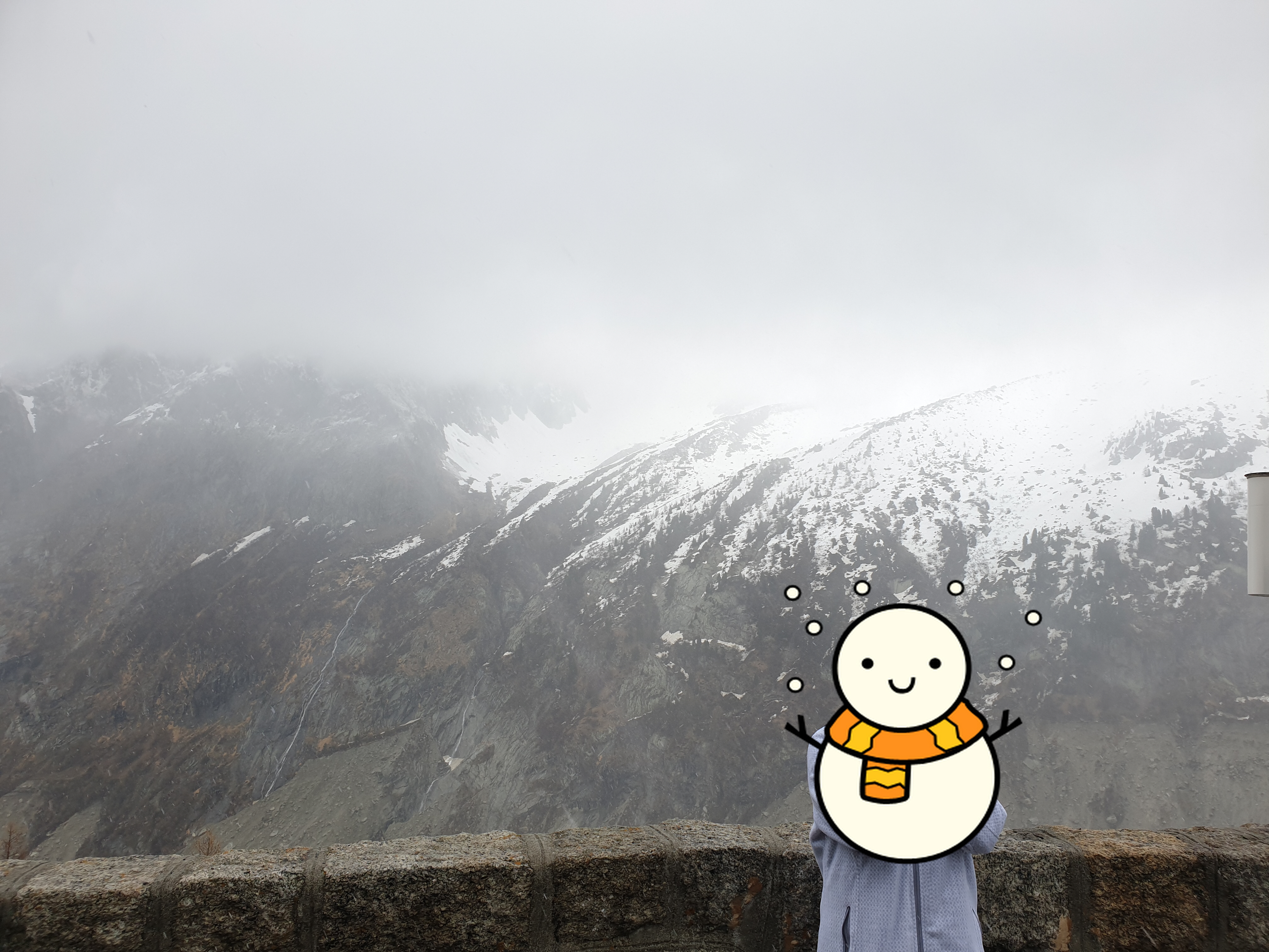 몽블랑에 있는 제일 크다는 빙하 메르드글라스를 구경했어요. 디어클라우드-얼음요새가 떠오르네요. 밑에 제가 입고 있는 점퍼가 원래 초록색인데, 비에 다 맞아서 검은색으로 변했어요. 와이프도 지금보니 복장이 엄청 추워보이네요. 스위스가면 얼어죽을 수도 있겠다 싶어서, 기차 타고 내려가자마자 시내에 파타고니아 매장 있길래 경량패딩 하나씩 바로 샀어요.