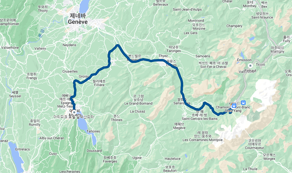 사실 이번 여행은 짧은 일정이지만 가고 싶은 곳이 많아 일정을 빽빽하게 잡았었어요. 리옹-안시-몽블랑까지 가는 일정이 모두 3일만에 이루어졌었죠. 그리고 3일차 밤에 몽블랑에서 스위스 슈피츠로 늦게까지 운전해서 갔어요. 추위에 떨다가 장시간 운전이 쉽진 않더라구요. 3년이라도 젊었을때라 가능하지 지금 하라 하면 못할 일정 같긴 하네요. 스위스에서의 여행 기록은 다음번에 이어서 진행하겠습니다 ㅎㅎ 구글지도가 어떻게 보면 저의 모든 개인 기록을 가지고 있어 무섭기도 한데.. 잊혀졌던 기억들을 떠올리게 해주어 참 고맙네요.
