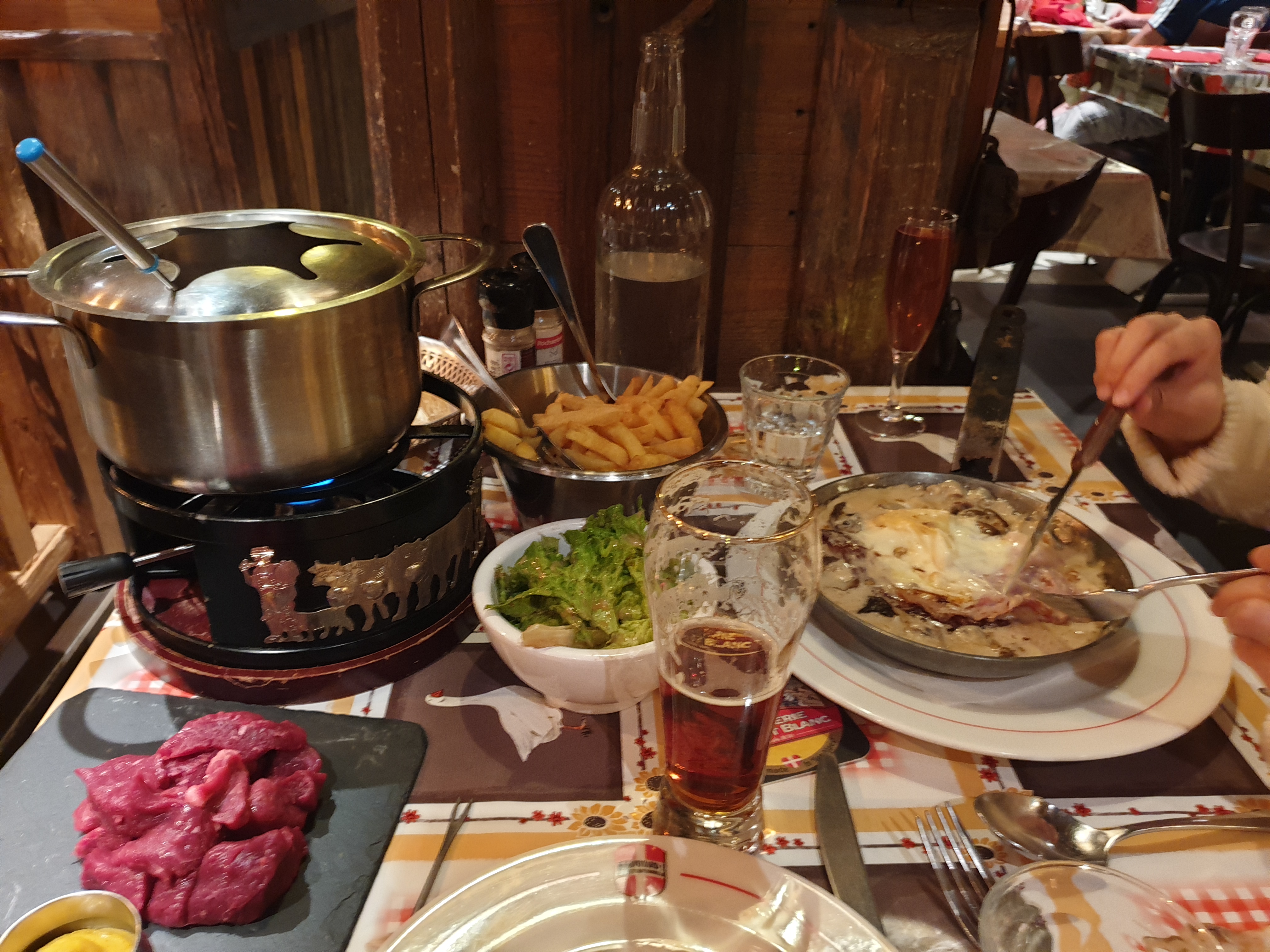 저희가 안시의 해질녘을 즐기며 어슬렁 거리다 저녁을 먹으러 들어간 곳은 Ô Savoyard라는 식당이에요. 여기서 퐁듀를 먹었어요. 저는 당연히 퐁듀하면 치즈에 찍어먹는거 아닌가 했는데, 치즈가 구성에 없는 소고기 퐁듀라는게 있더라구요 그래서 바로 시켰어요.