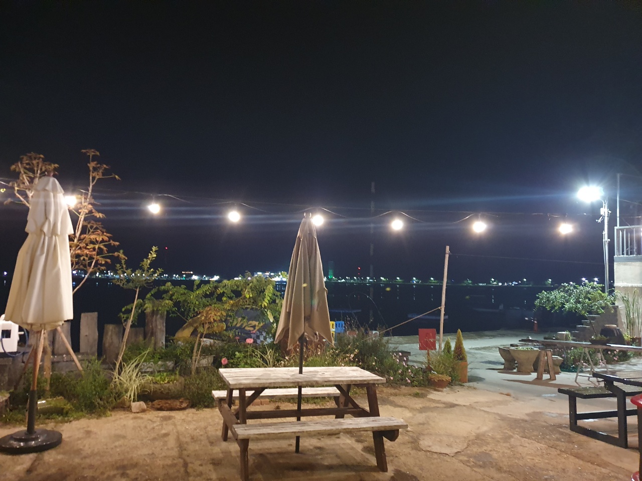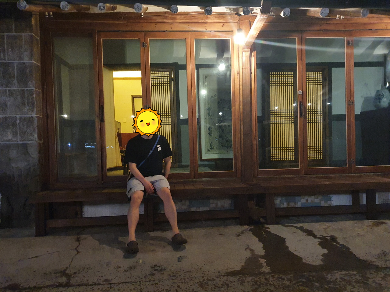 밤에는 또 조명이 환하게 비춰 주고요. 선유도 밤바다를 느낄 수 있어요. 밤에는 집에서 노는 시간을 가집니다. 아래 사진 나뭇바닥에 앉아만 있어도 시원해요.