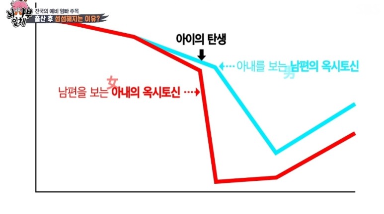 저번에 티비 프로그램 집사부일체에서 정재승 교수님이 나와 부모의 옥시토신 그래프에 대해 설명한 걸 본 적이 있어요.