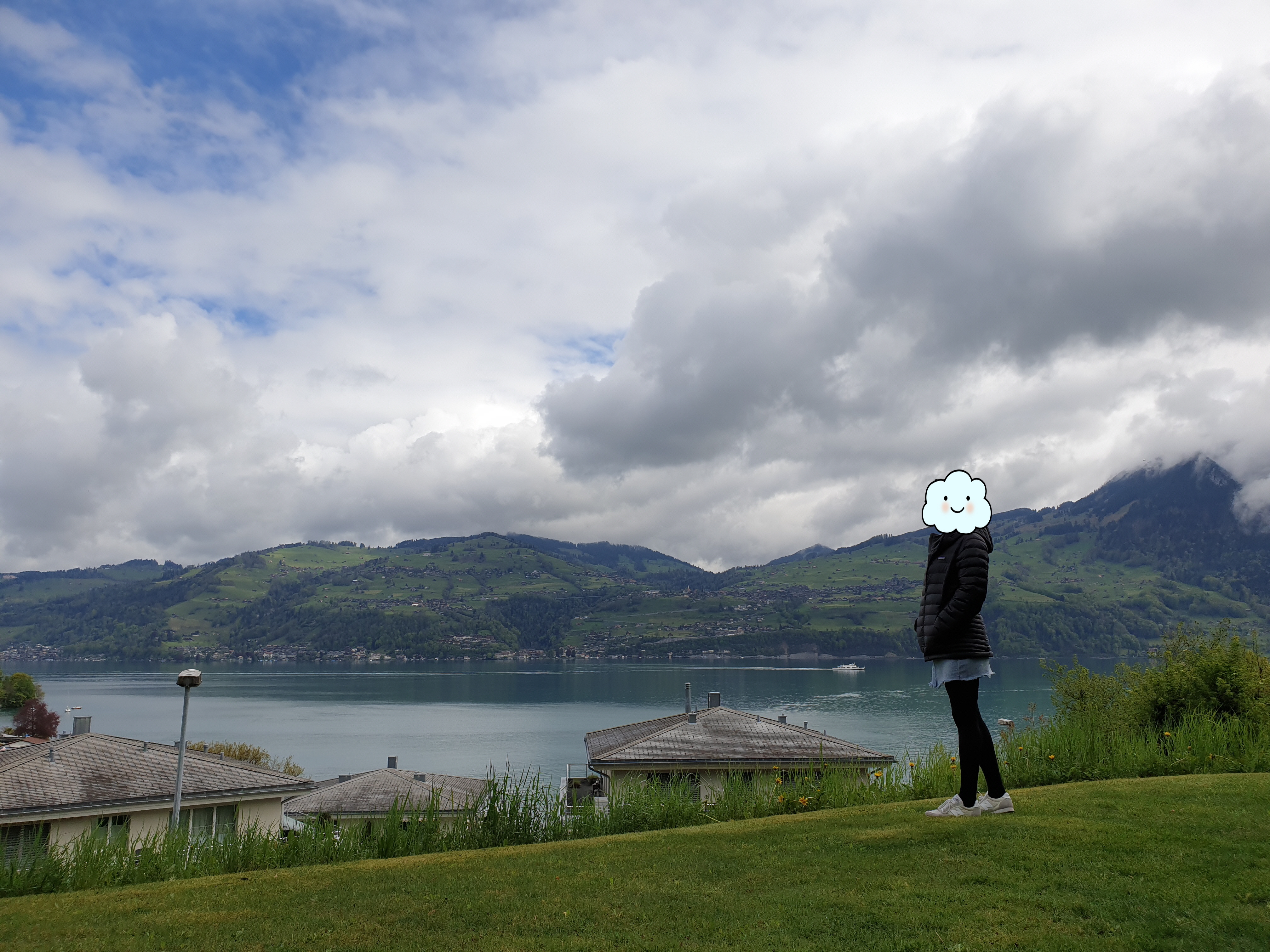 그리고 마지막 사진은 호텔 바깥 산책로에서 보이는 스위스의 풍경이에요. 하늘이 정말 아름답죠. 고도가 높은 곳일수록 구름이 손에 닿을 듯 더 선명하게 보이더라구요.