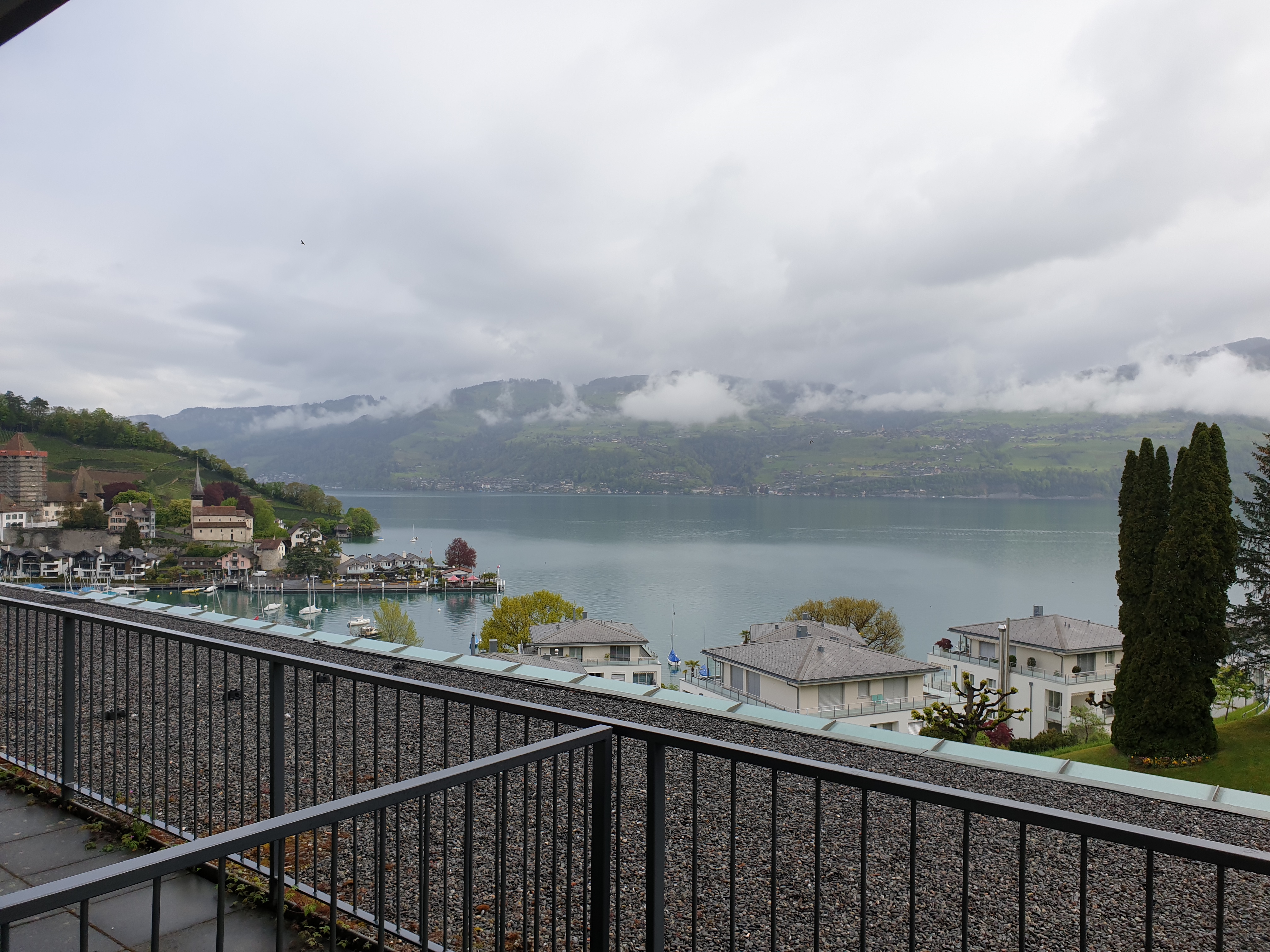 저희는 그렇게 첫 날 저녁 10시쯤 스위스 슈피츠(Speiz)에 위치한 슈트란트호텔 벨베데흐(Strandhotel Belvédère)에 도착했어요. 아쉽게도 너무 늦게 도착해서 밥을 먹을 수 있는 곳은 없더라구요. 호텔도 외지 같은 곳에 있다 보니 밤늦게 룸서비스는 불가하였어요. 호텔의 옆으로는 툰호(Thunersee)라는 호수가 크게 있고, 옆으로 인터라켄도 가깝기 때문에 렌트해서 여행하시면 정말 숙박하기 좋은 곳이에요. 일단 관광객들이 잘 안오는 지역이라 정말 스위스 현지를 느낄 수 있어요.