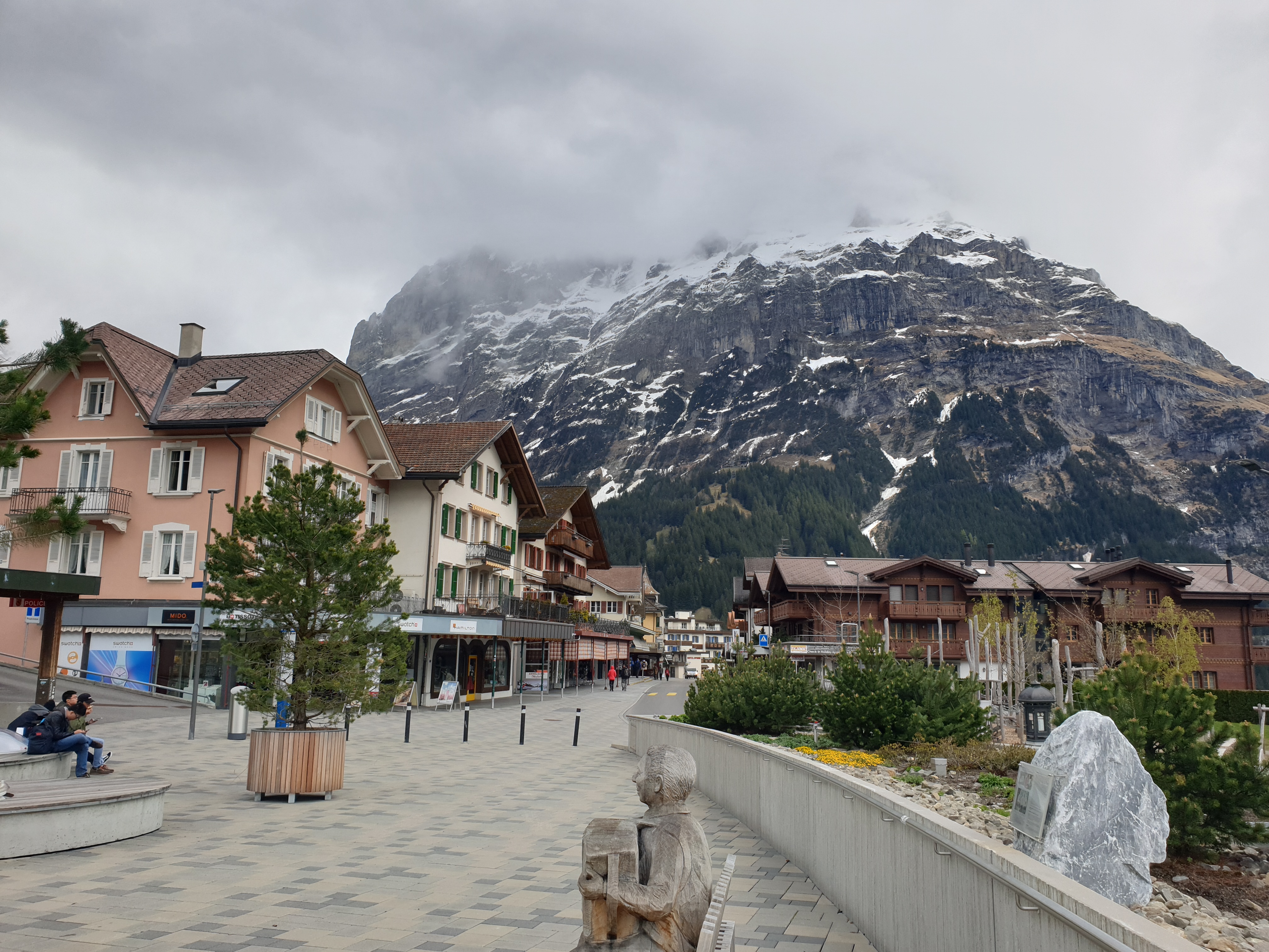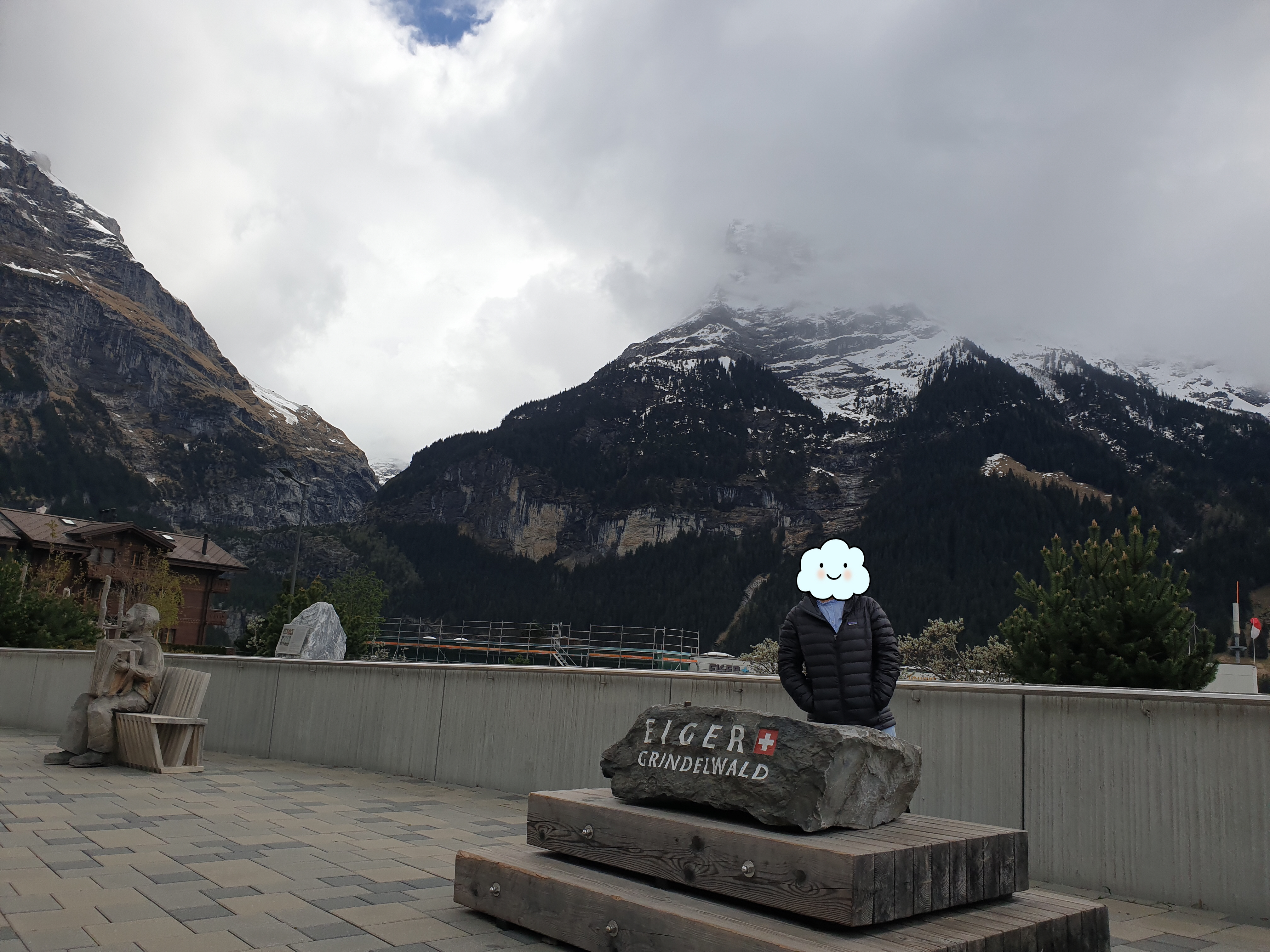 저희는 먼저 인터라켄 동역에서 융프라우행 기차에 올랐어요, 기차에서 간단하게 빵이랑 커피도 마셨구요. 그리고 첫번째역에서 버스를 타고 그린델발트로 향했죠. 사실 이미 렌트카를 타고 오면서 아름다운 스위스 풍경을 많이 본 상태라, 그린델발트로 가면서 보이는 풍경은 큰 감흥이 없었지만, 동네는 재미있었어요. 설산도 보고 스위스 집들도 구경하고 상점들도 구경했죠. 그리고 알프스는 매우 정적인 느낌이어서 저희 부부에게 딱 맞아요. 그린델발트를 충분히 둘러본 후, 융프라우로 향했어요.