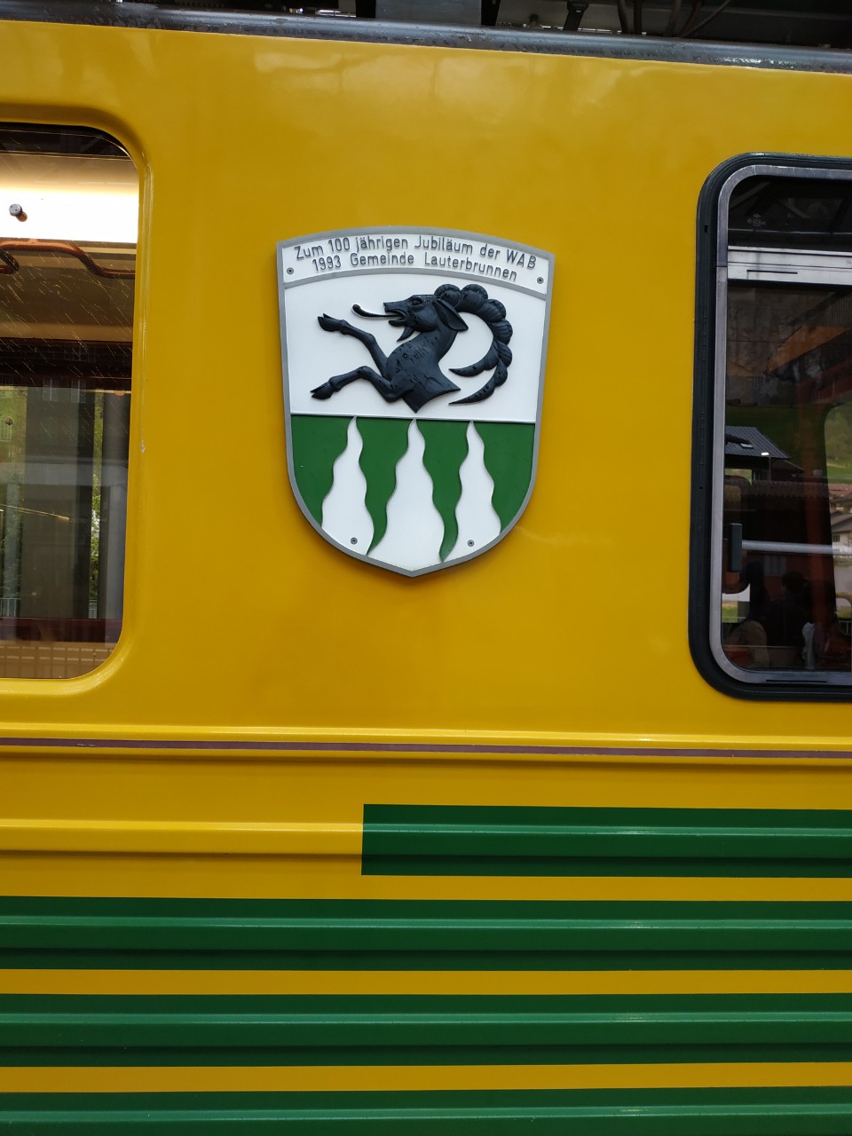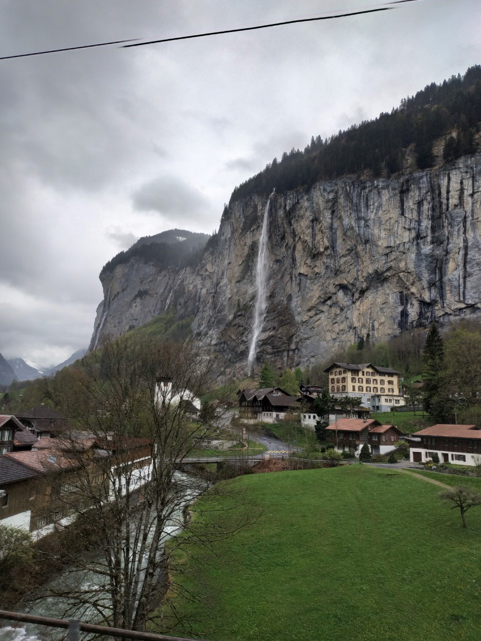 그리고 내려올때는 시간이 촉박해서 빠르게 라우터브루넨 방향으로 내려왔어요. 아쉬우니까 기차에서 사진도 더 찍었구요. 폭포가 떨어지고 있네요.