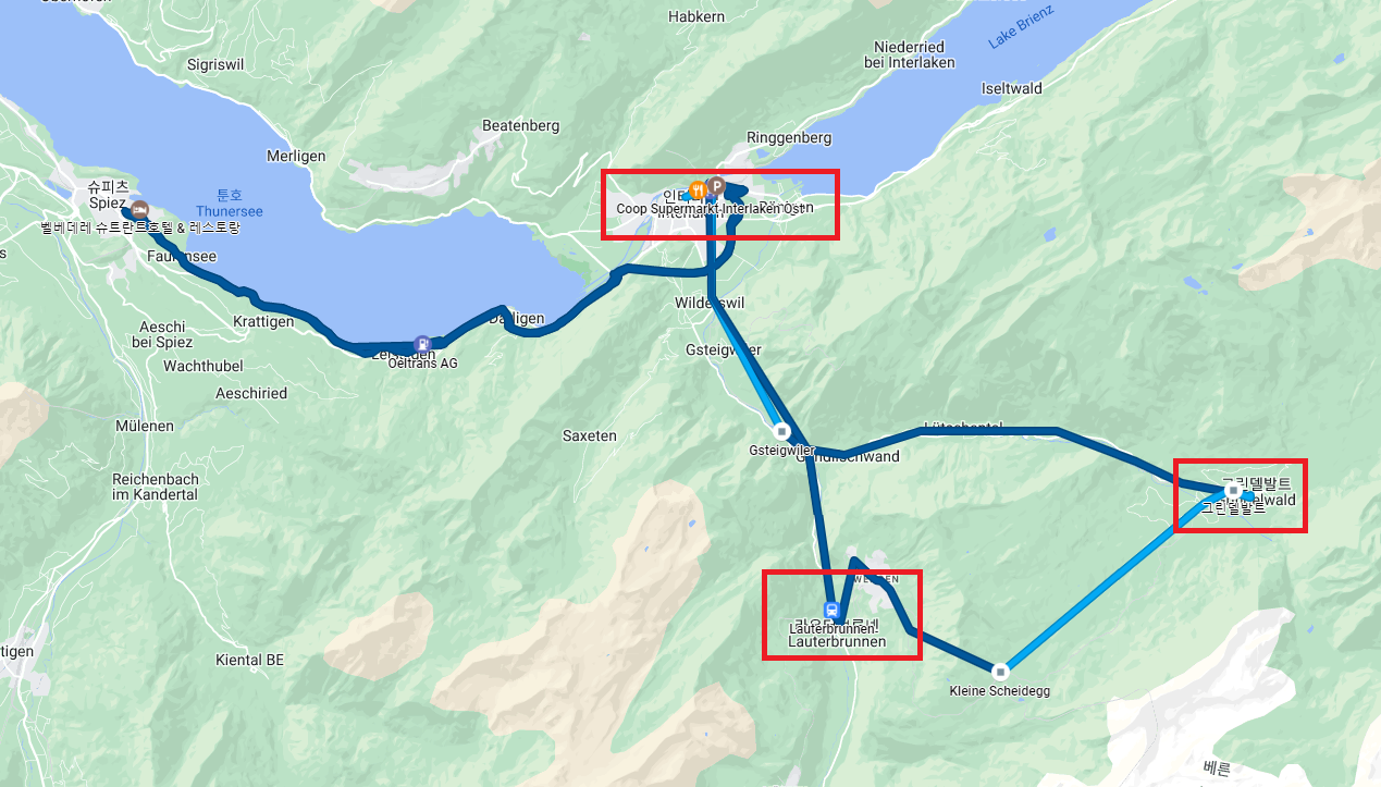 인터라켄 루트는 간단해요. 올라갈때는 글린델발트로 향해 융프라우로 간 후 내려올때는 라우터브룬넨 방향으로 재빨리 내려왔어요.