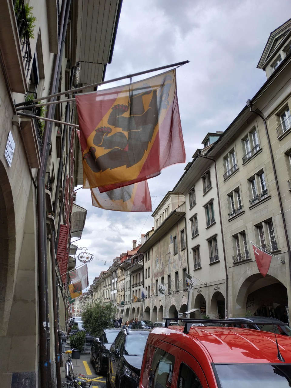 알프스를 갔다온 다음날 스위스의 마지막 일정은 베른을 잠시 들린 후 리옹으로 돌아가는 일정이었어요. 알프스를 떠나기보다 슈피츠를 떠나는게 더 슬펐던 것 같아요. 베른은 사람들과 도시는 활기찬데 날씨는 약간 서글픈 느낌이었어요. 제가 갔던 때가 유독 날씨가 흐렸던걸까요? 그리고 개인적으로 곰 그려져 있는 베른의 국기가 너무 좋았어요. 멋있는 느낌이죠. 베른국기 기념품 못 사온게 아쉽네요.