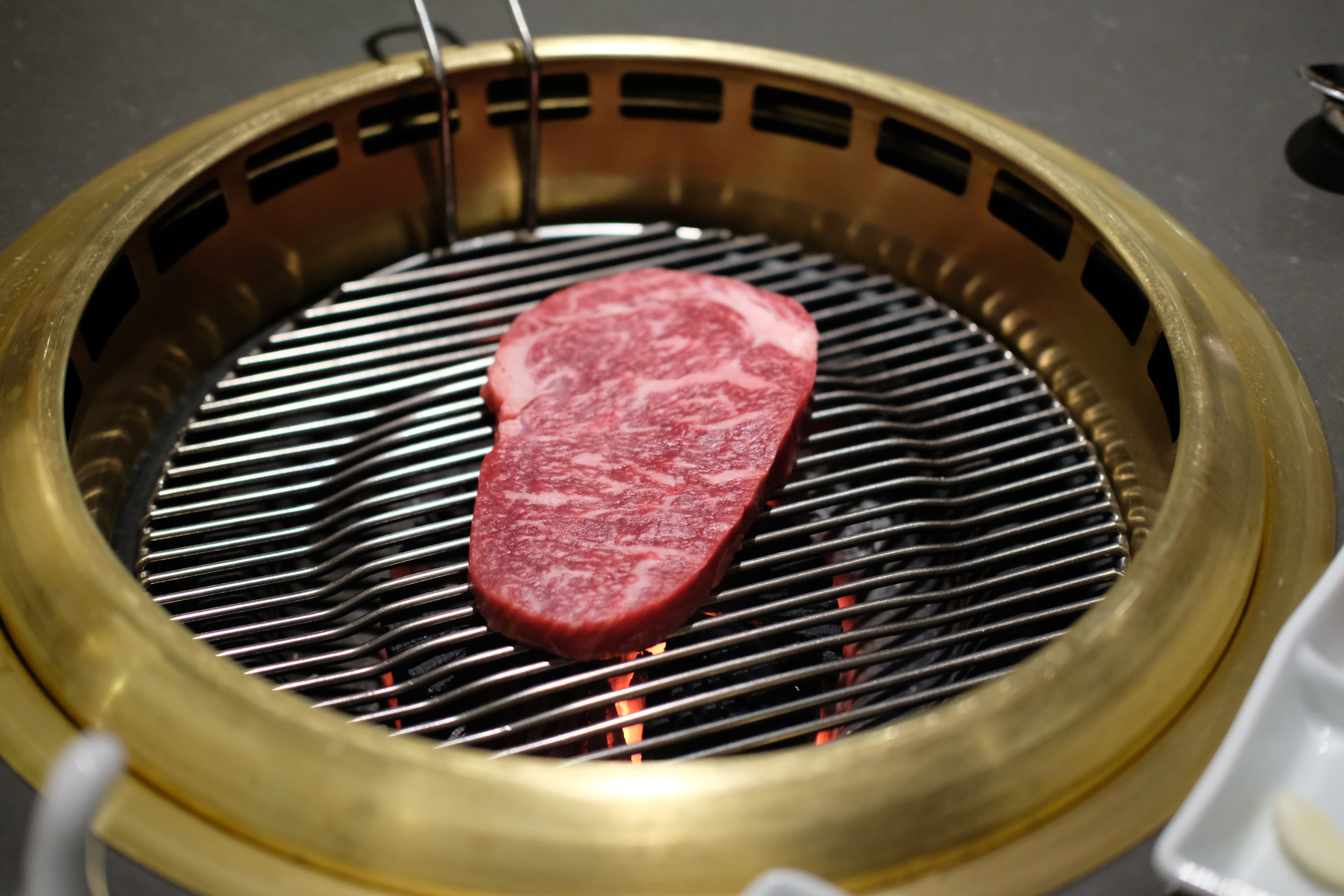 저희가 시켰던건 등심 1인분에 양념갈비 1인분이었어요. 등심이 9만원대였던걸로 기억하고 양념갈비가 7만원대였던것 같아요. 확실히 비싸긴 비싸네요. 집에서 숯불 피우고 싶어지네요.
