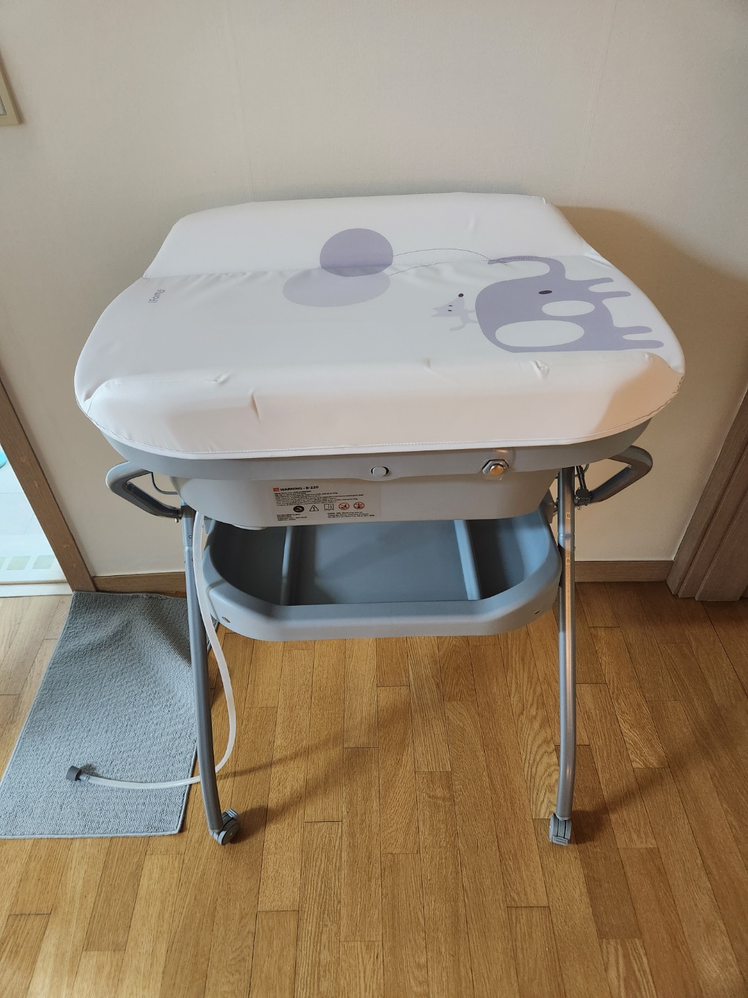 그리고 이렇게 완성되었습니다. 평소에는 아래처럼 기저귀 갈이대로 사용하면 되고 기저귀 갈이대가 본체에 연결되어 있어 옆으로 돌려 내릴 수 있어요.