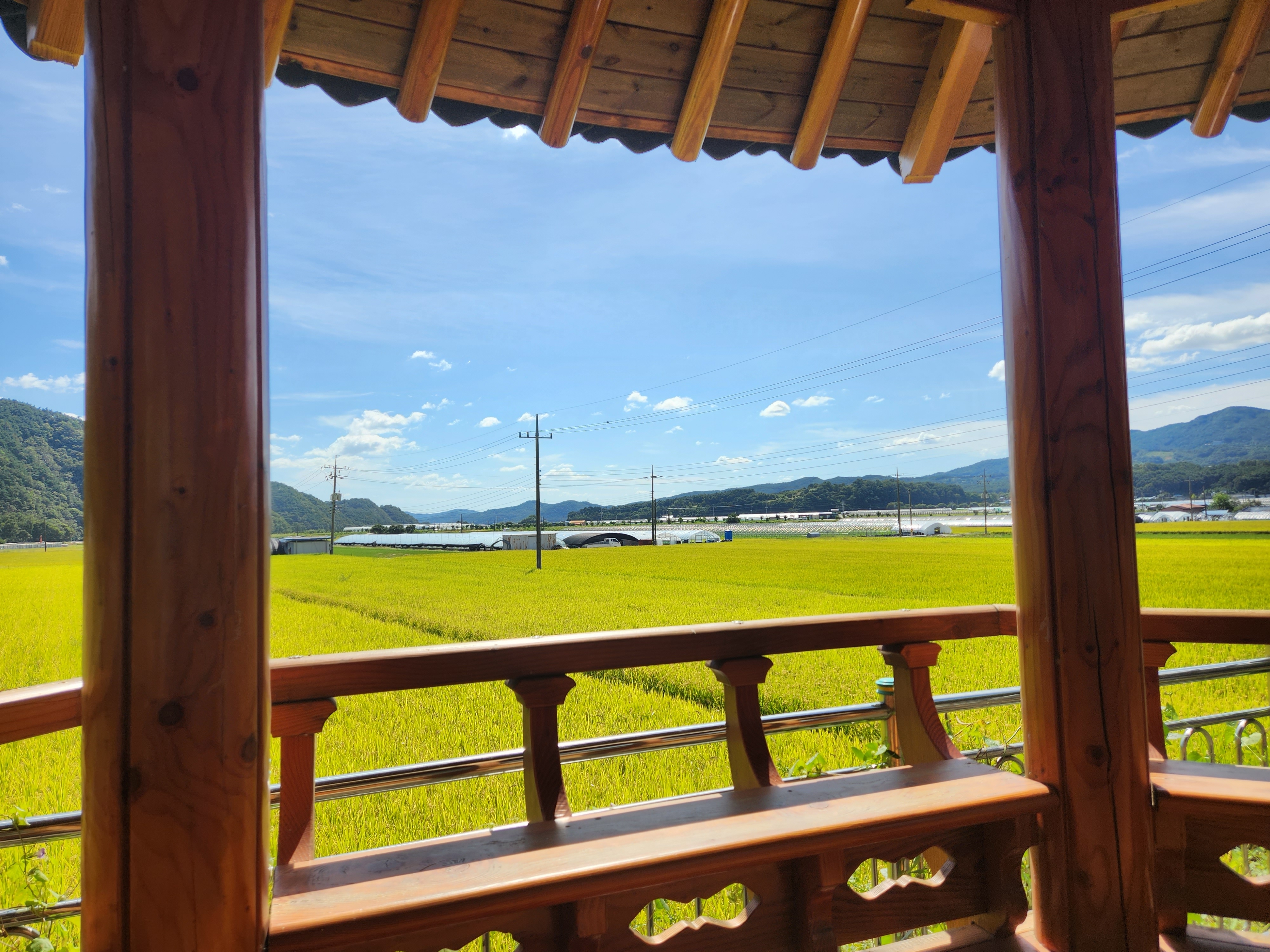 아버지 고향에 위치한 정자에서 논을 바라봅니다.