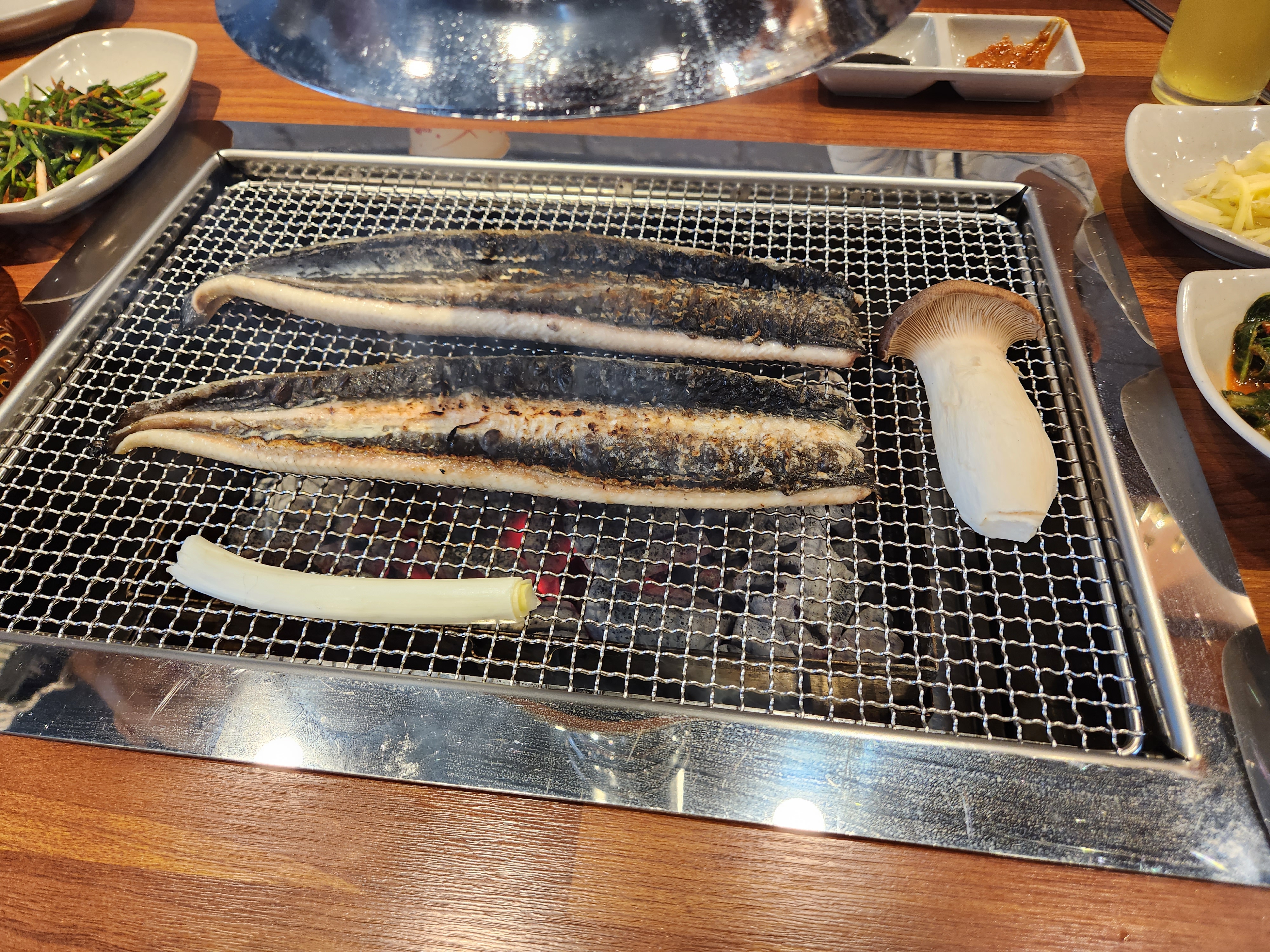 굽고 있는 중인데 아래가 대자 2인분입니다. 주문한 메뉴가 빨리 나오는편이었어요.