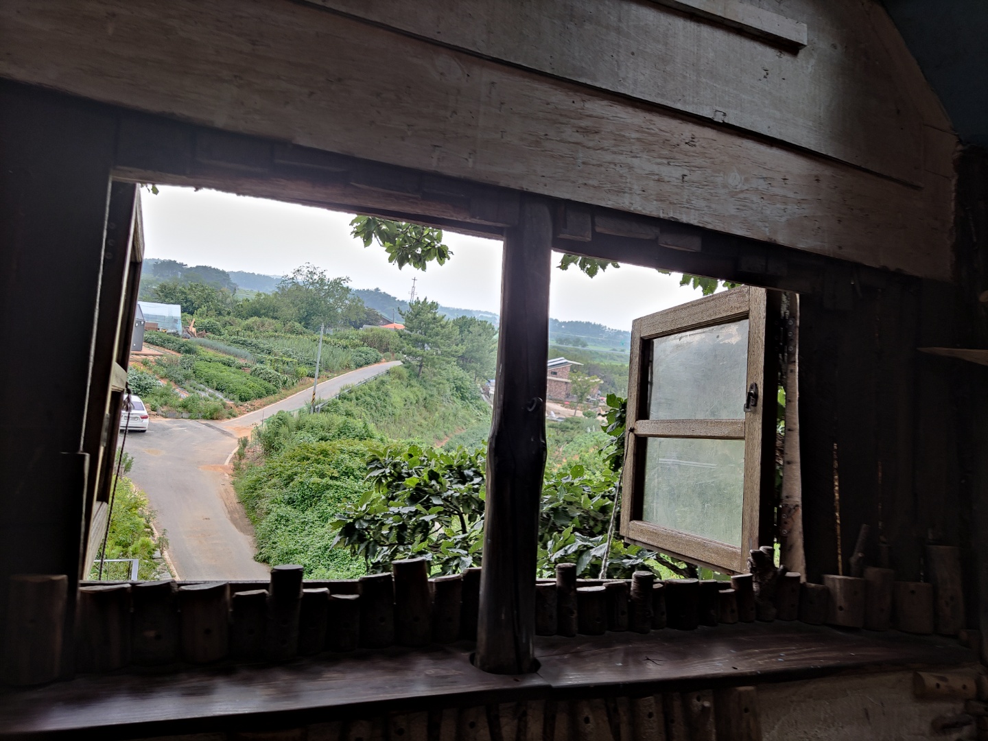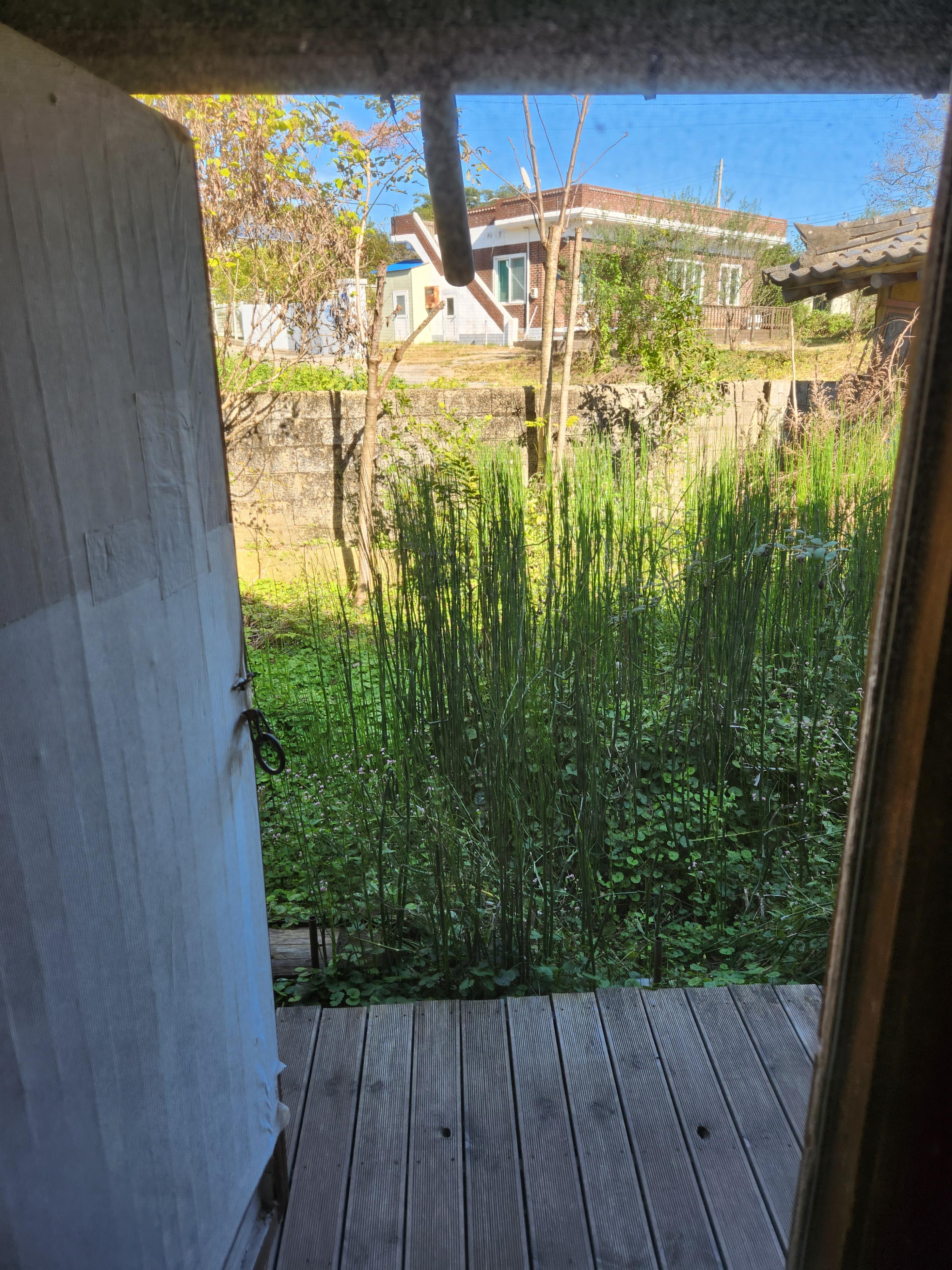 커피먹으면서 문밖으로 보이는 풍경이에요. 시골의 정취가 좋네요.