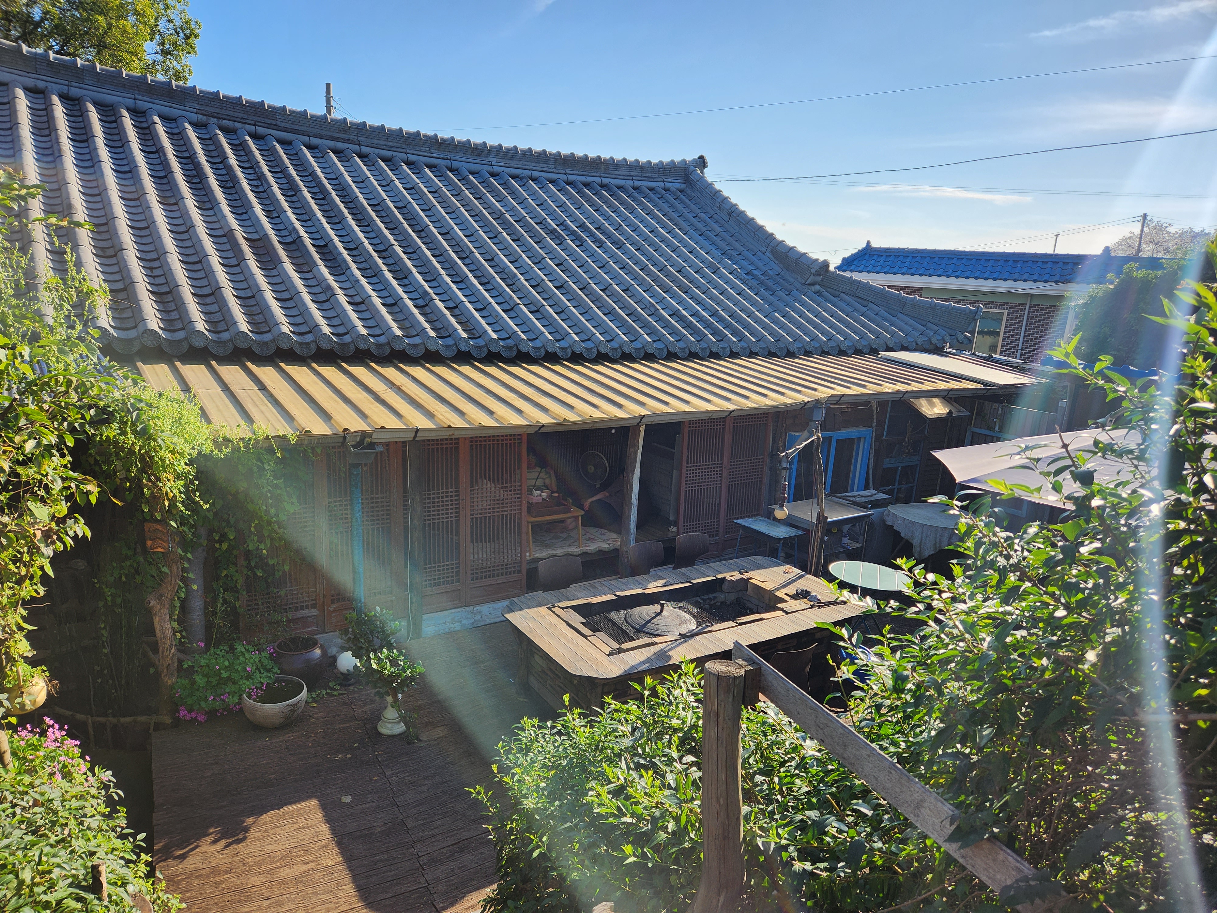 아래 문으로 들어가서 신발을 벗고 들어가시면 되어요. 입구쪽 말고 오른쪽으로 걸어가시면 정원과 야외테이블이 나와요. 입구만 보고 돌아가지 마시고 꼭 한번 들어가보시길 추천해요.