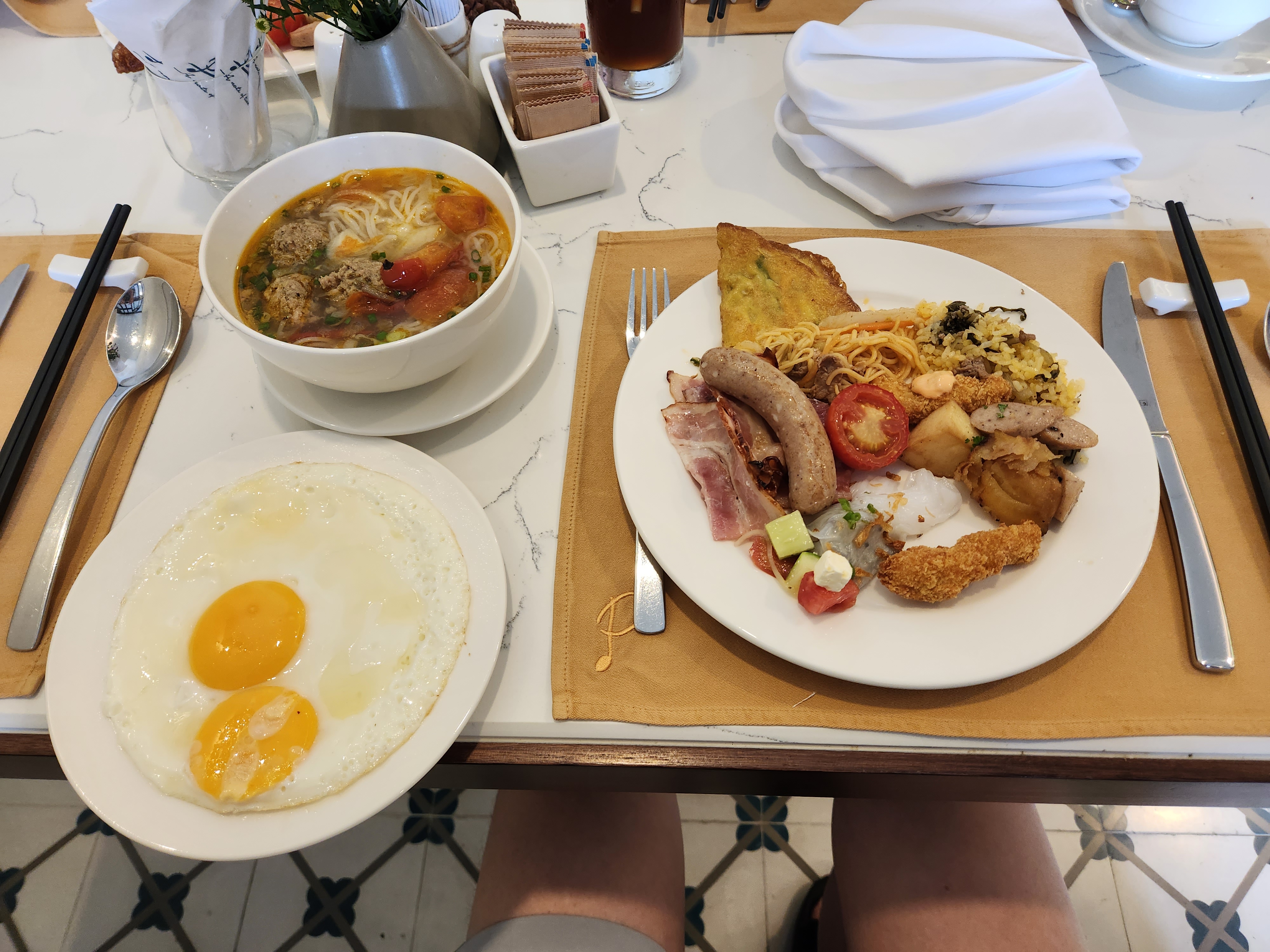 요건 호텔에서 먹은 조식인데 맛있었어요 ㅎㅎ 아 근데 저 국수는 좀 쉽게 들어가진 않더라구요. 계란은 서니사이드업 굳