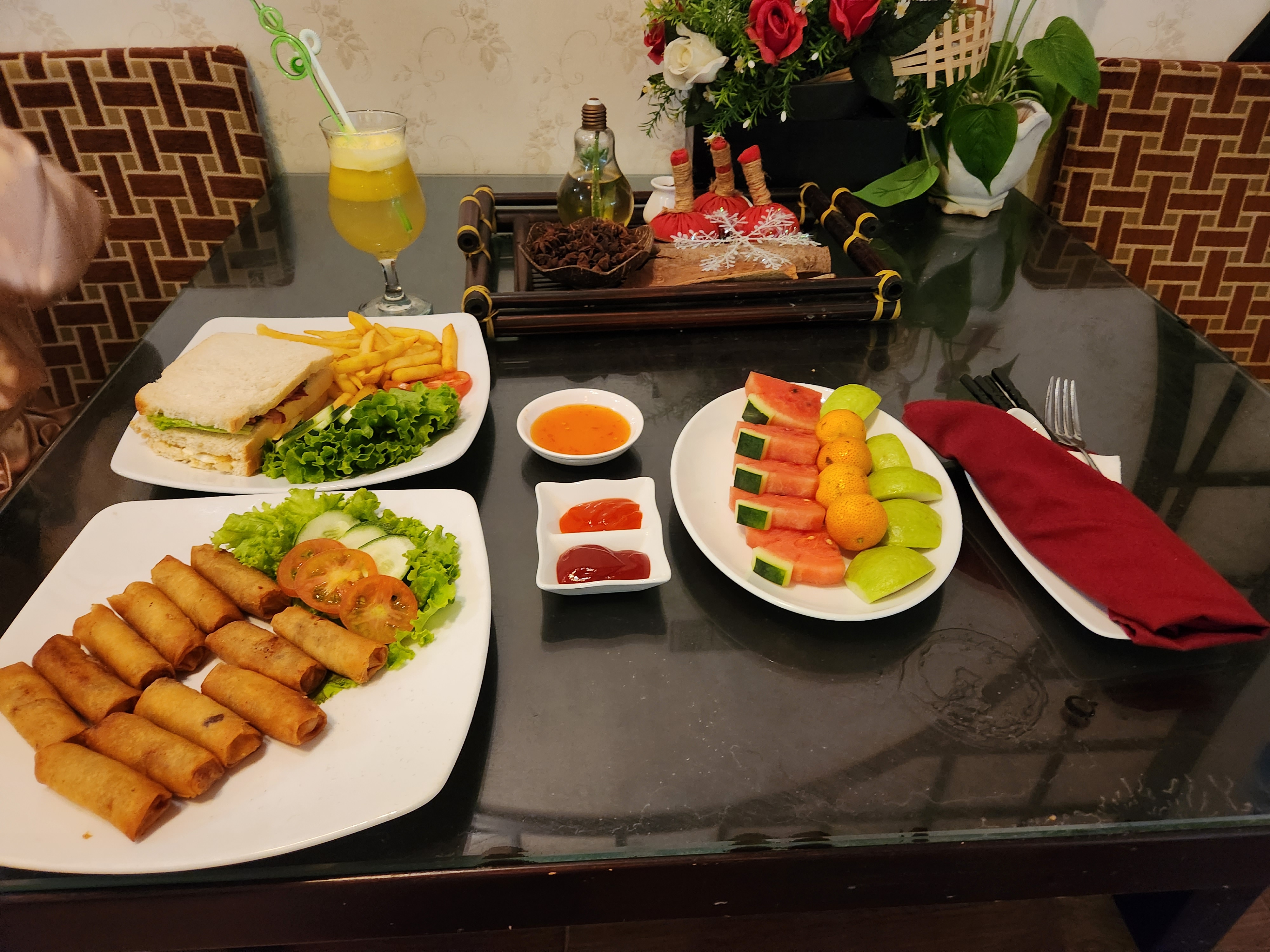 자개 쟁반은 저희가 산건데 그냥 분위기 내볼려고 커피에 받쳐봤어요. 자개 쟁반은 "담 시장"이라는 곳에서 샀는데 시내에서 조금 거리가 있지만 역시 시장구경은 재미있더라구요.