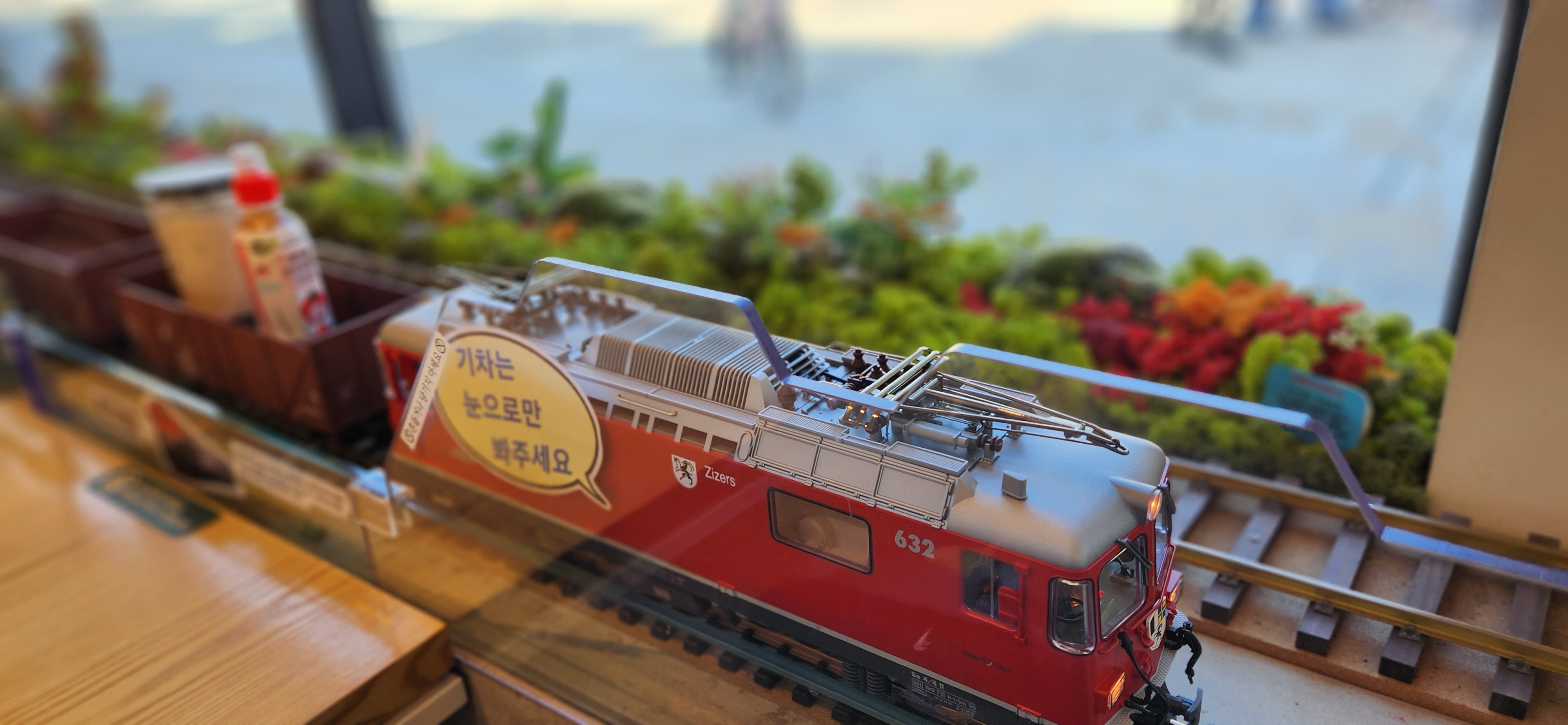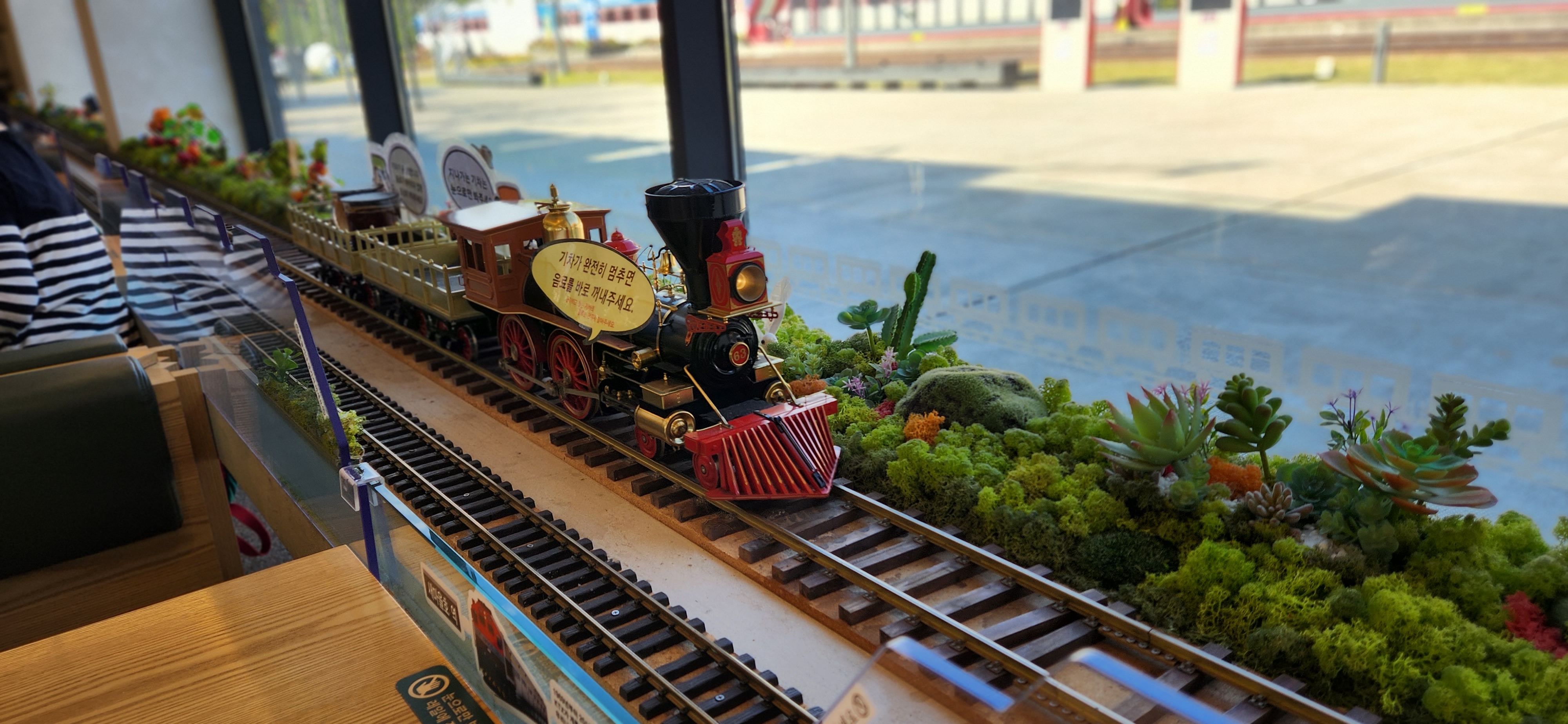 카페의 특장점은 기차가 음료를 배달해준다는 점이에요. 카페는 총 3층으로 되어 있는데 1층만 기차가 배달해주니 참고하세요.