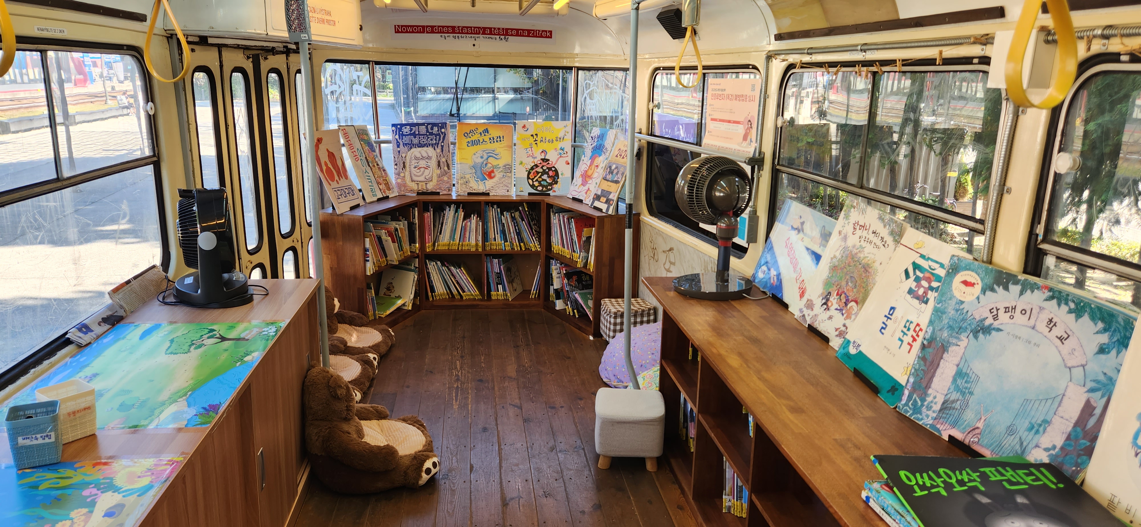 아이들과 가볍게 시간 보낼 수 있는 트램도서관도 있어요.