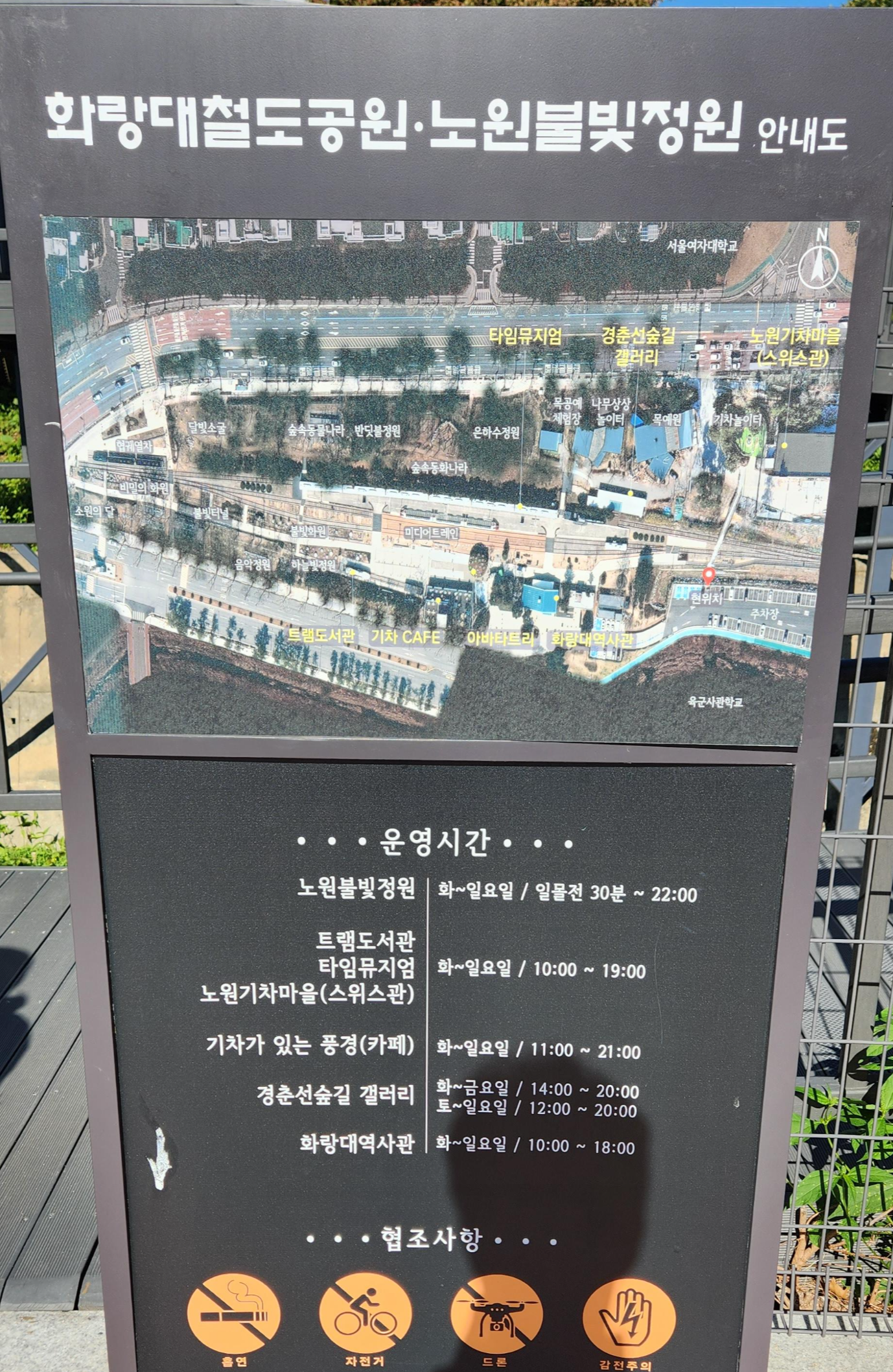 주차 후 올라가보면 바로 오른쪽에 노원기차마을 건물이 보여요. 들어가면 기차 모형 및 마을들이 만들어져 있는데 구경하기 좋아보이더라구요. 유료이긴 하지만 가격도 저렴했어요. 저희도 처음에 이곳부터 들어갔으면 돈 내고 구경했을텐데