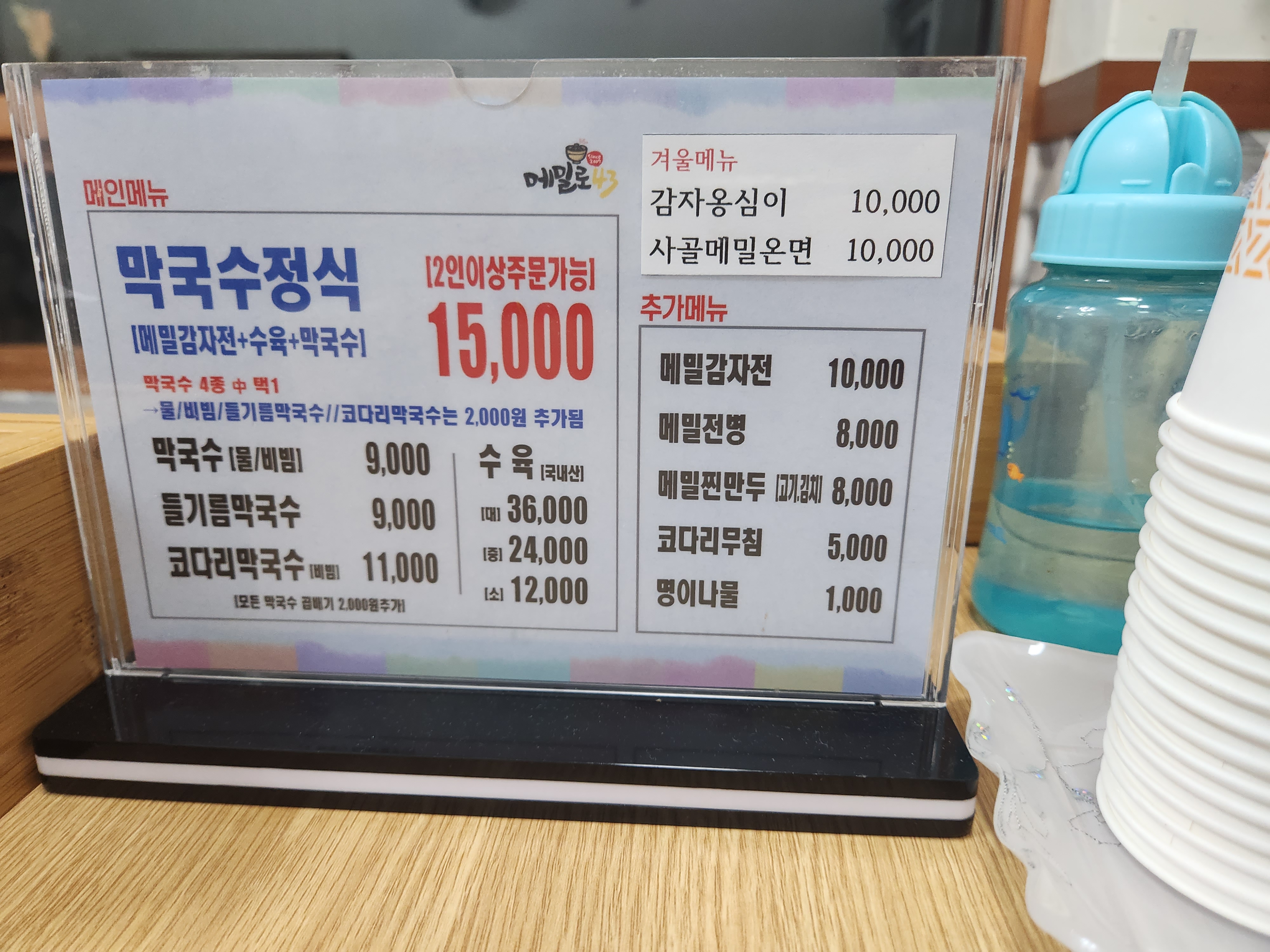 이건 메뉴판이에요. 저희는 막국수 정식을 먹기로했어요.